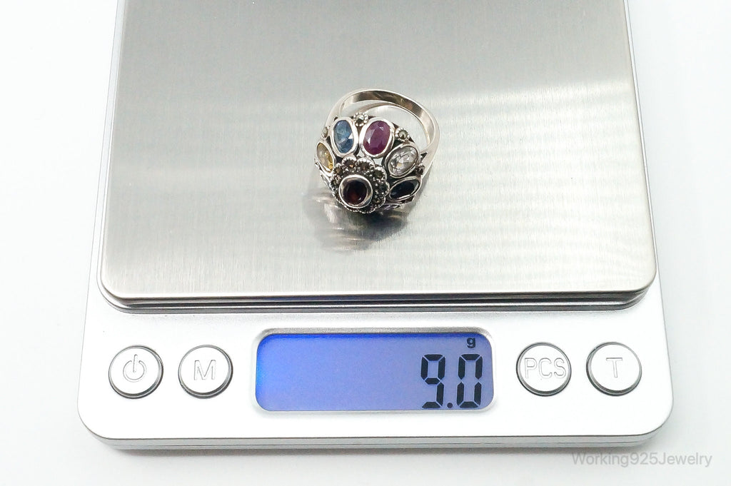 Vintage Designer SX Multi Gem Art Deco Sterling Silver Ring - Size 7