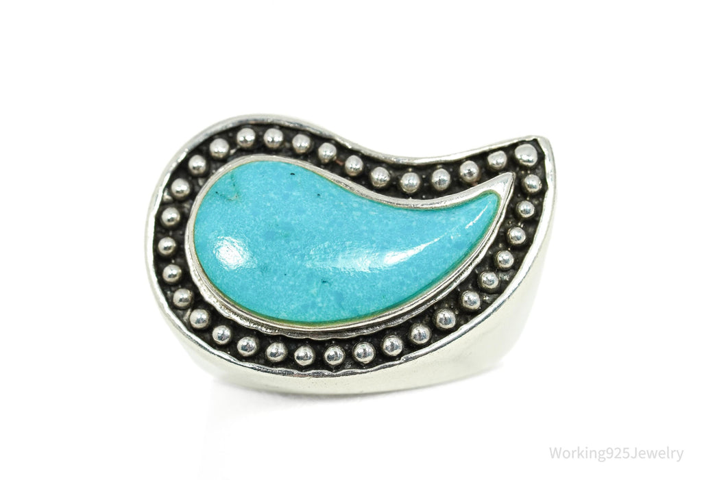 Vintage Designer SX Turquoise Paisley Sterling Silver Ring - Size 6.25