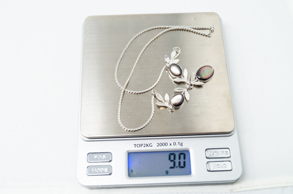 Vintage Designer Van Dell Black MOP Sterling Silver Necklace
