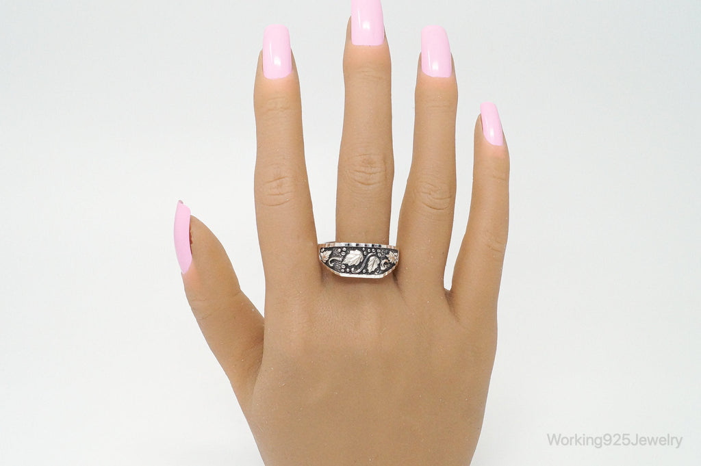 Vintage Designer WM Co Grape Vine Leaves Sterling Silver Ring - Size 12.75