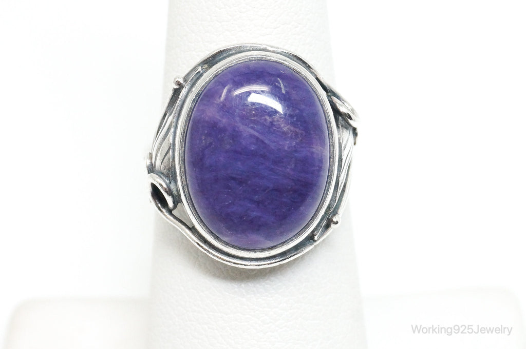 Vintage Designer WS Large Charoite Modernist Sterling Silver Ring - Size 6.5
