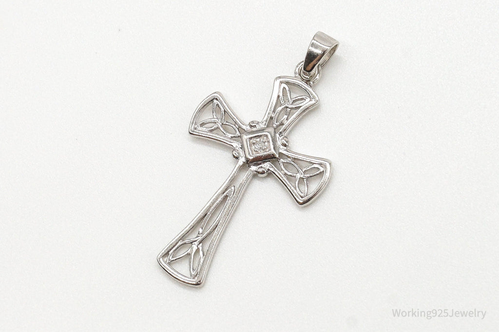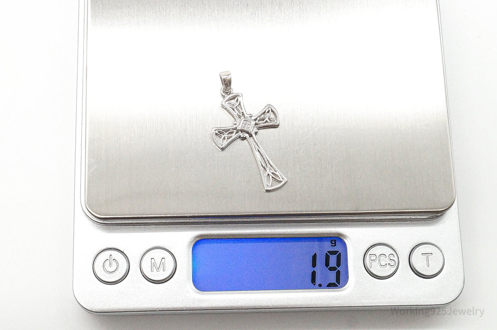 Vintage Diamond Celtic Cross Sterling Silver Pendant