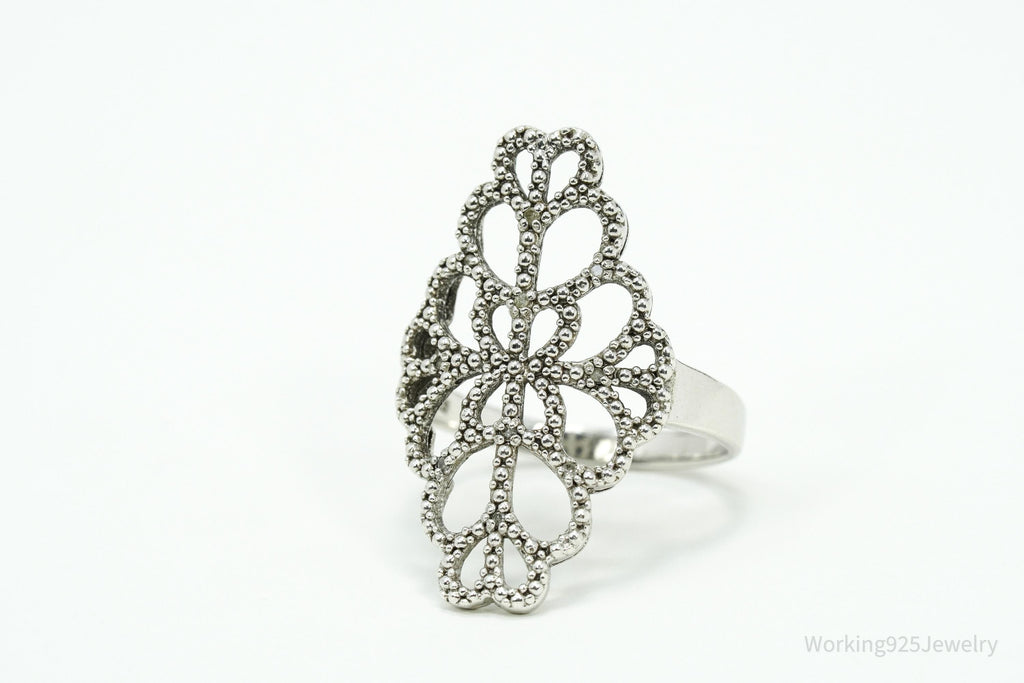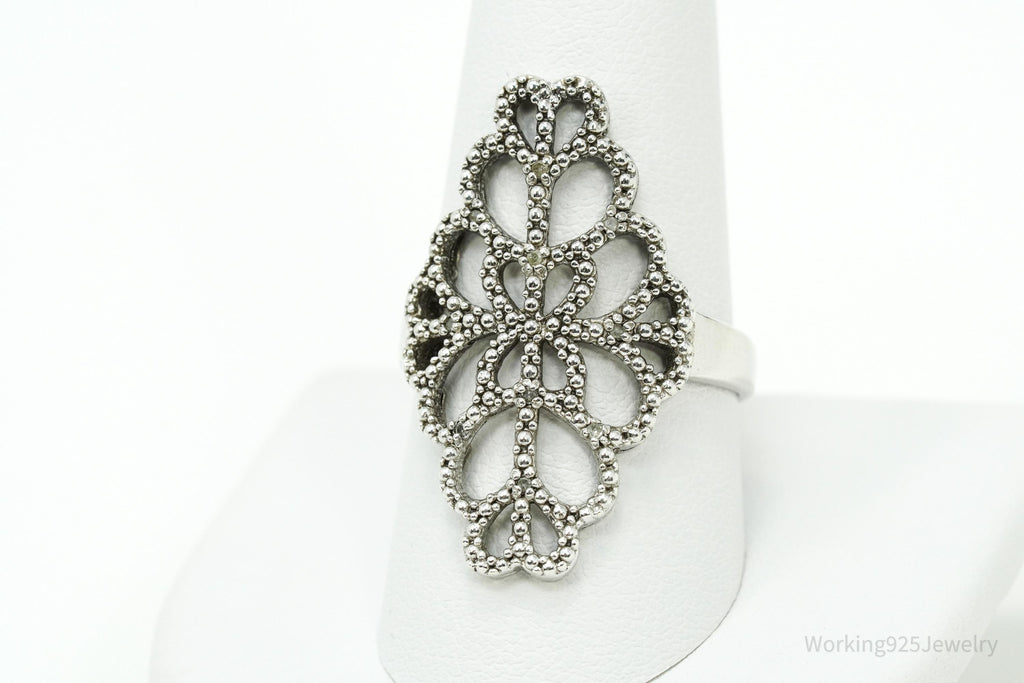 Vintage Diamond Sterling Silver Ring - Size 10