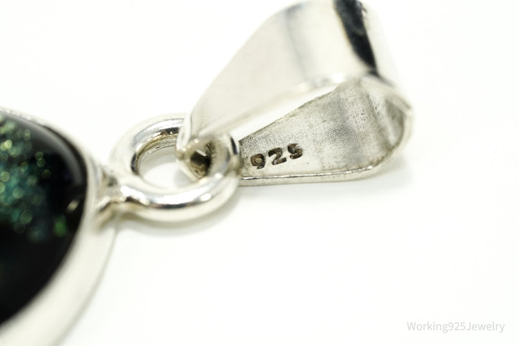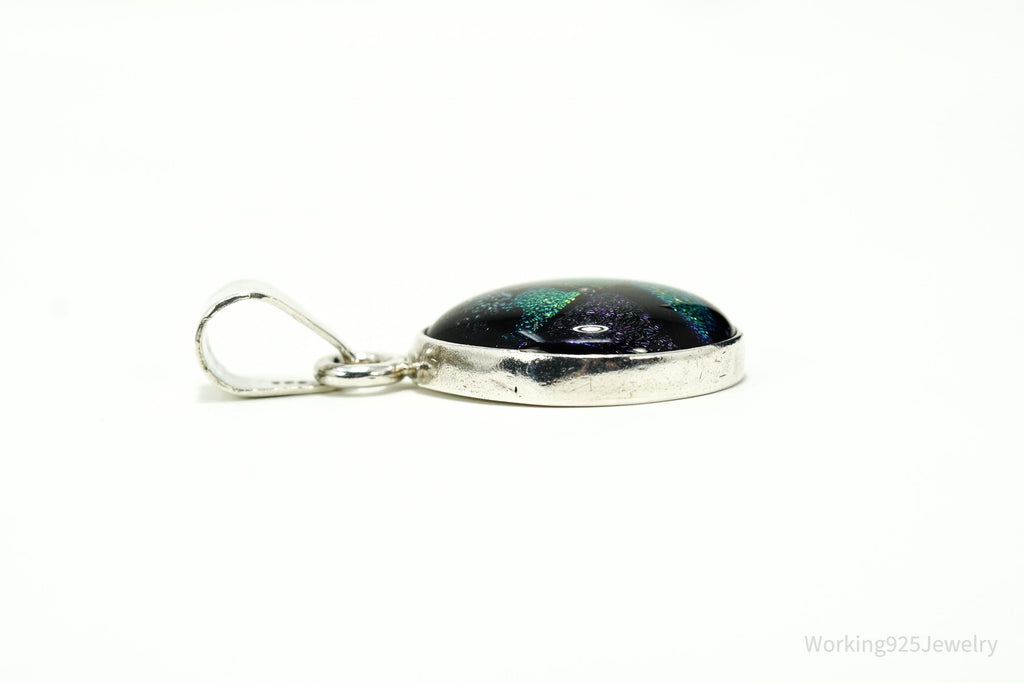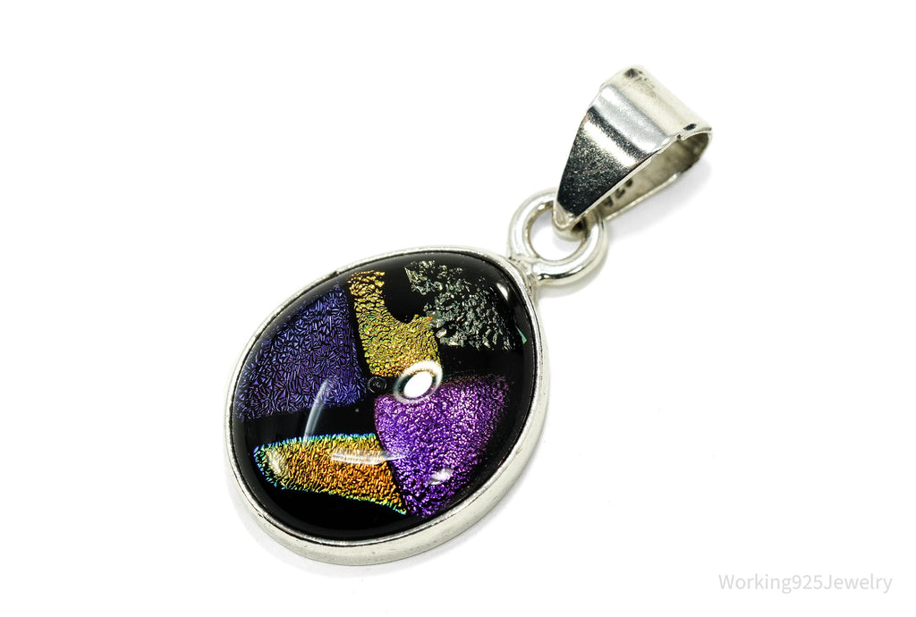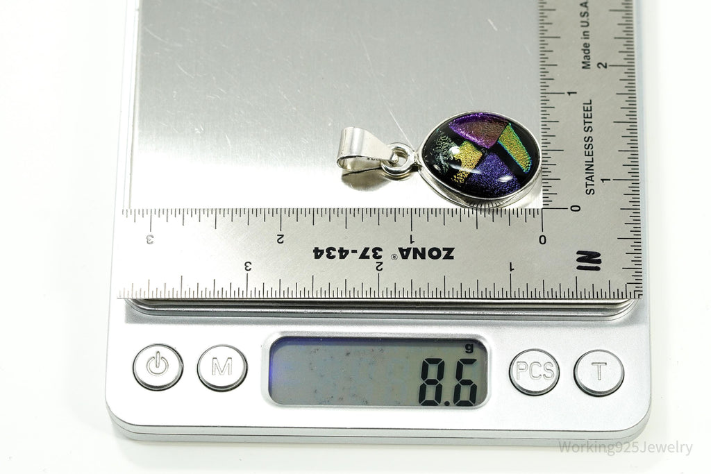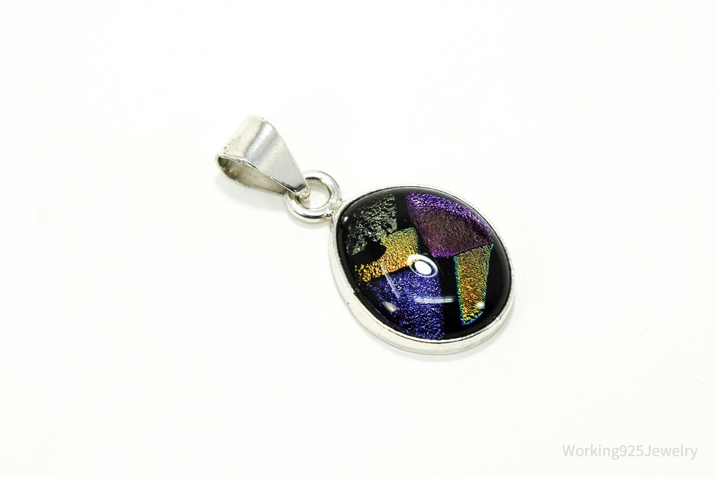 Vintage Dichroic Glass Sterling Silver Pendant 1 5/8"