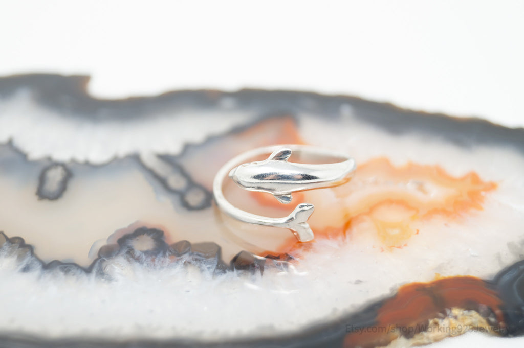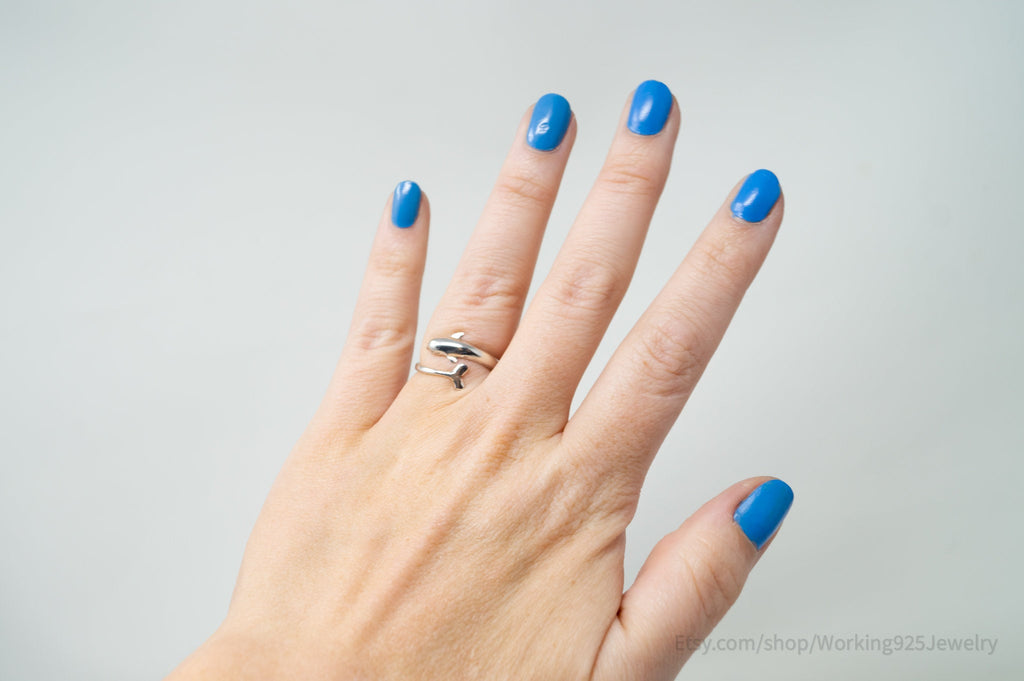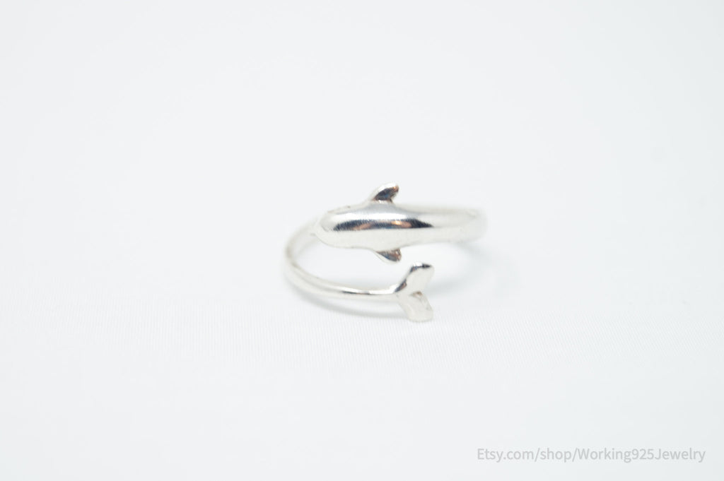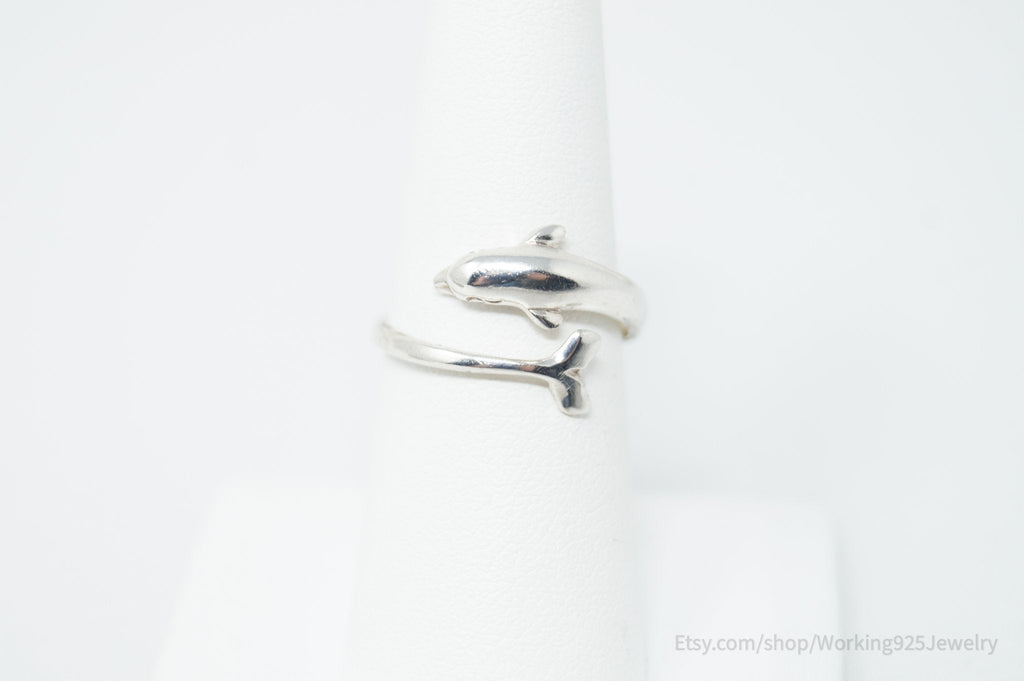 Vintage Dolphin Sterling Silver Wrap Ring - Size 7
