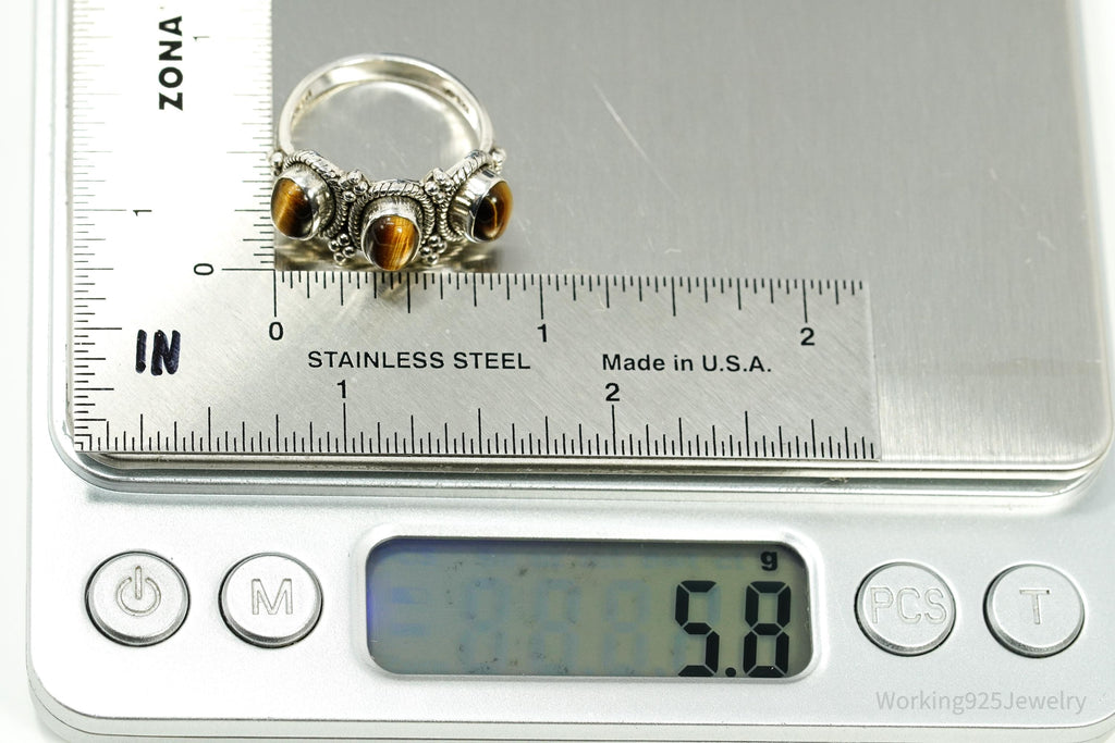 Vintage Doug Paulus Tigers Eye Western Style Sterling Silver Ring - Size 8