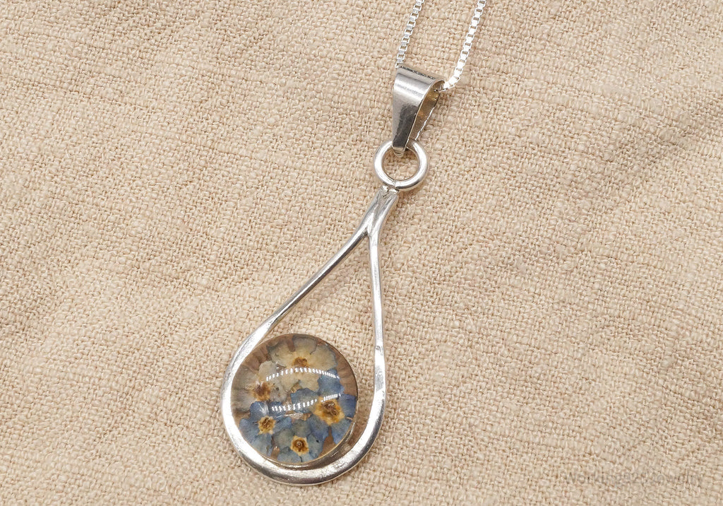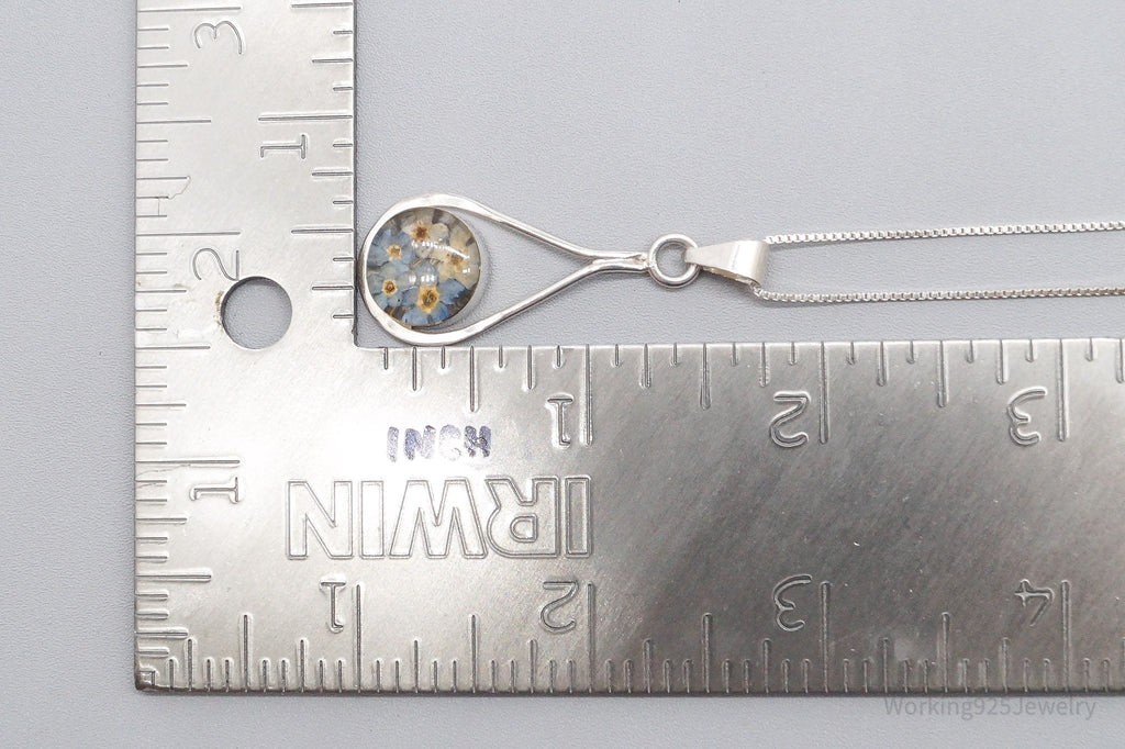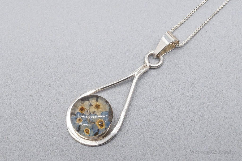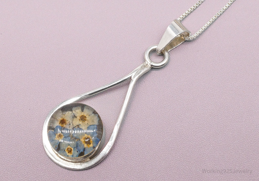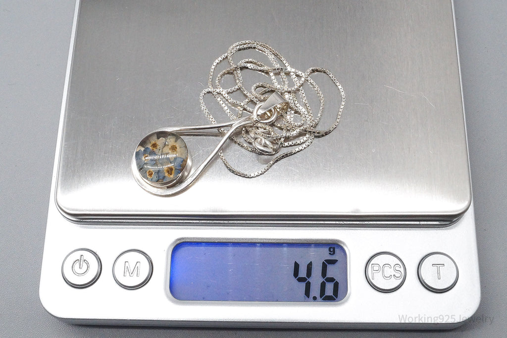 Vintage Dried Flowers Sterling Silver Necklace 20"