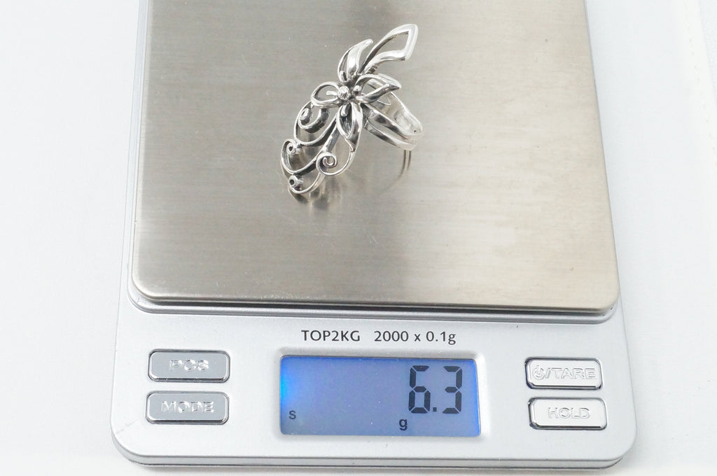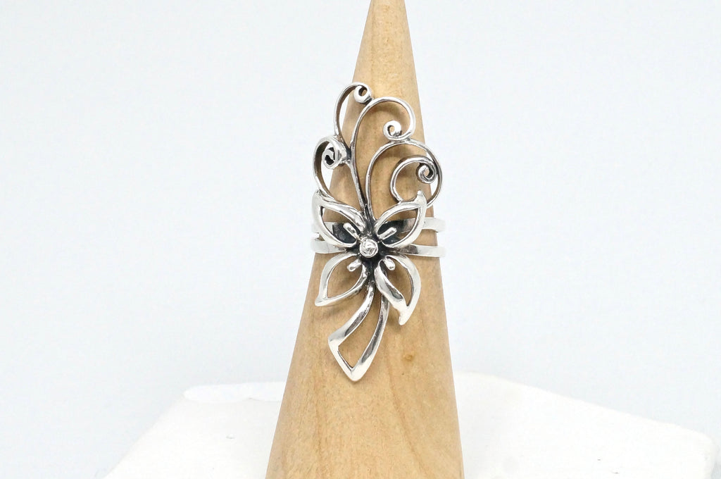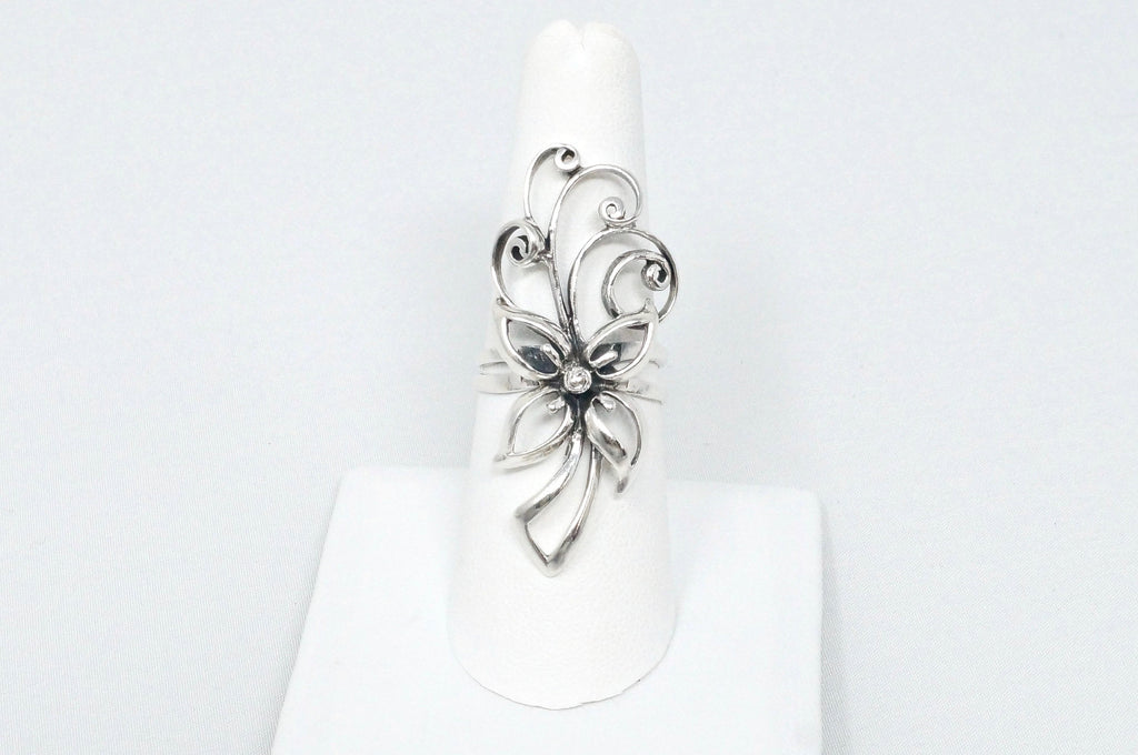 Vintage Elegant Floral Motif Swirl Sterling Silver Statement Ring Sz 7.5