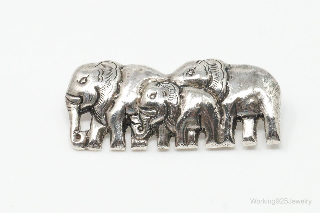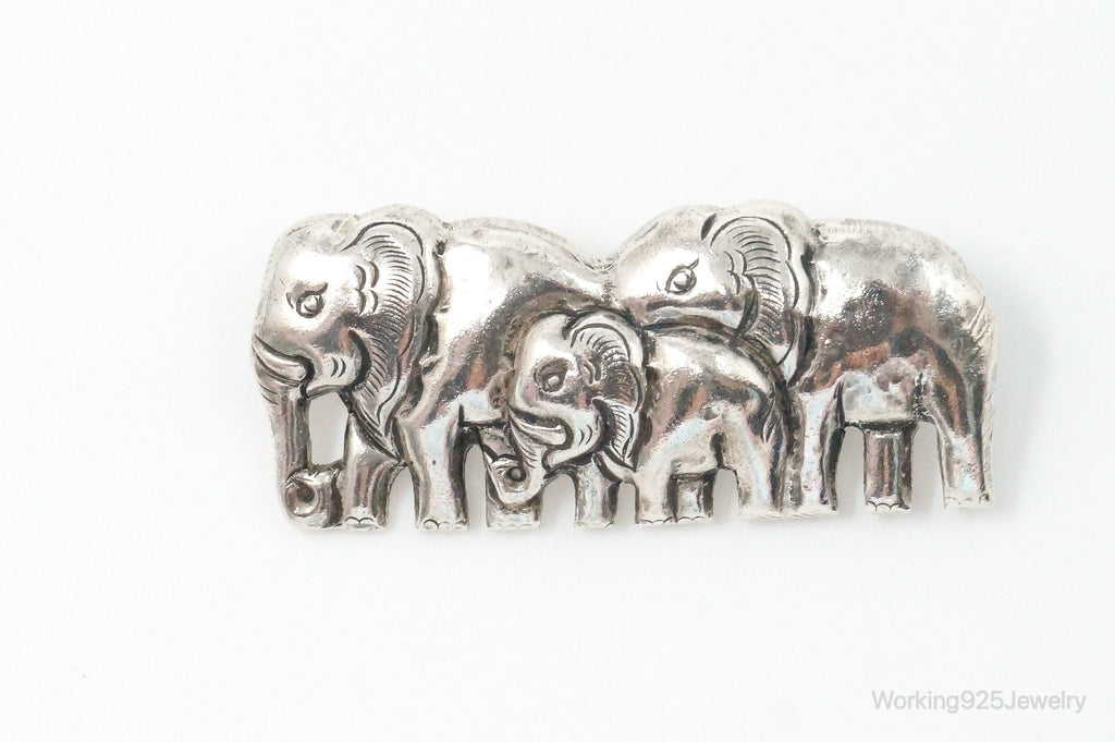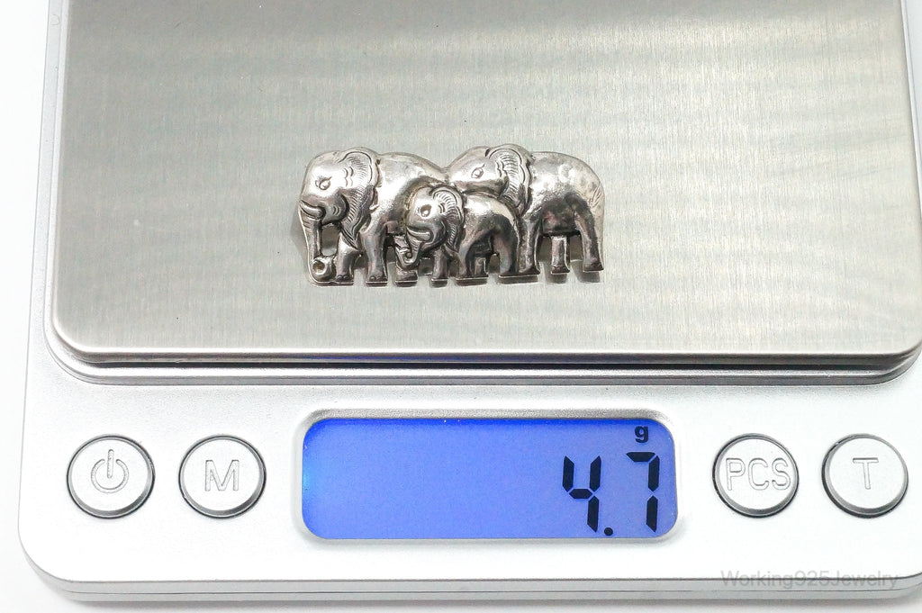Vintage Elephant Family Sterling Silver Brooch Pin