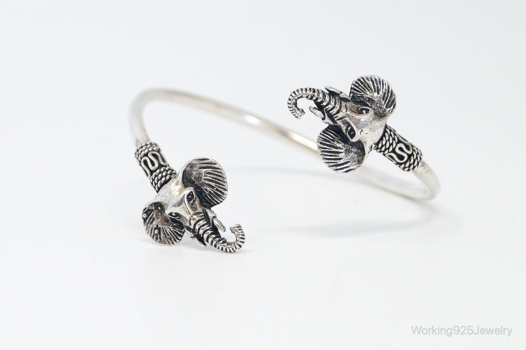 Vintage Elephant Heads Sterling Silver Wrap Bracelet