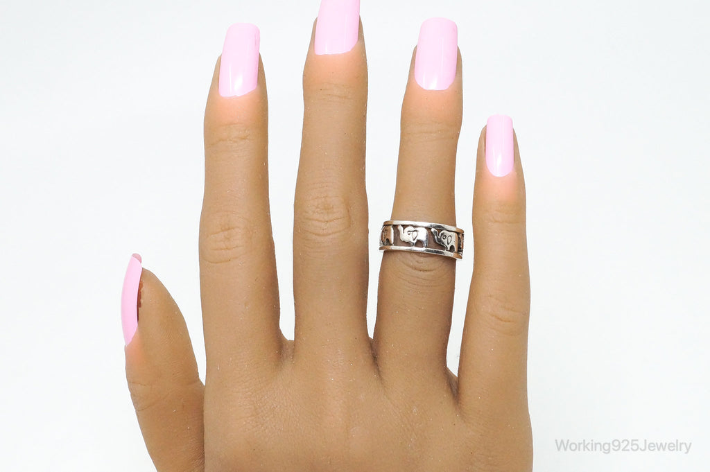 Vintage Elephant Safari Good Luck Sterling Silver Ring - Size 6.25