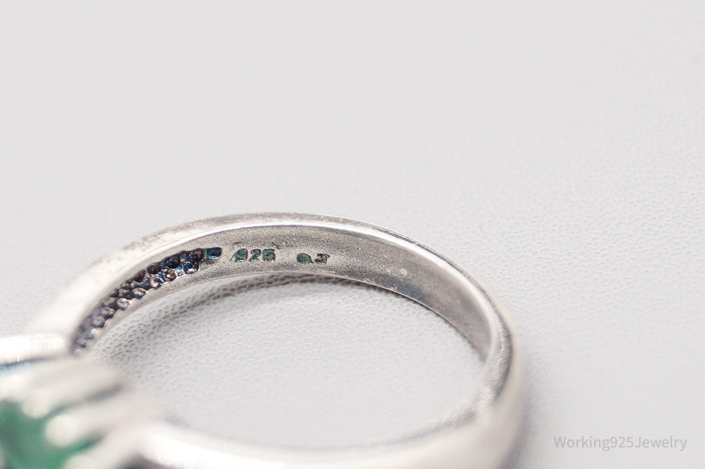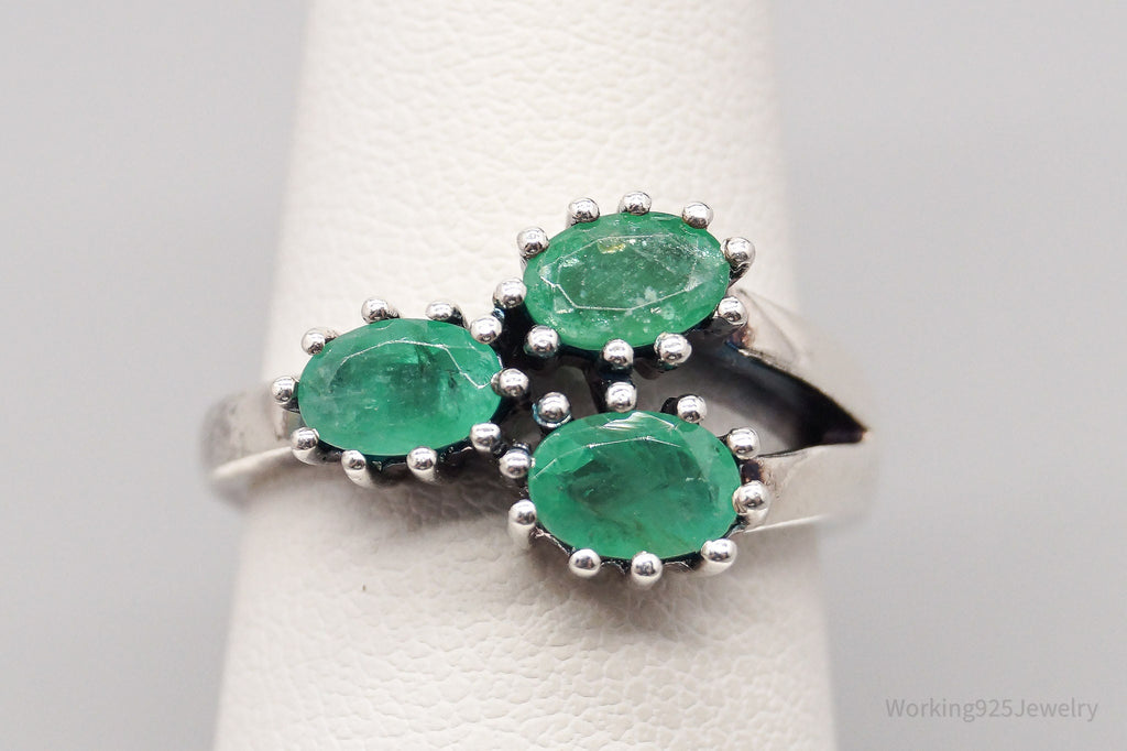 Vintage Emerald Sterling Silver Ring - Size 6.75