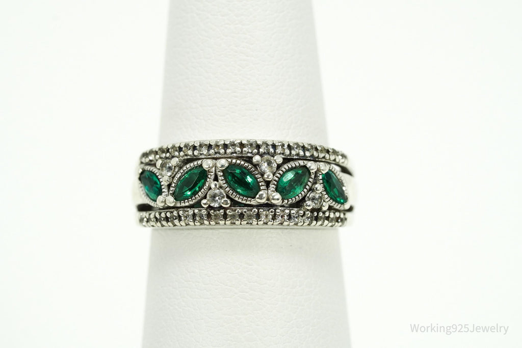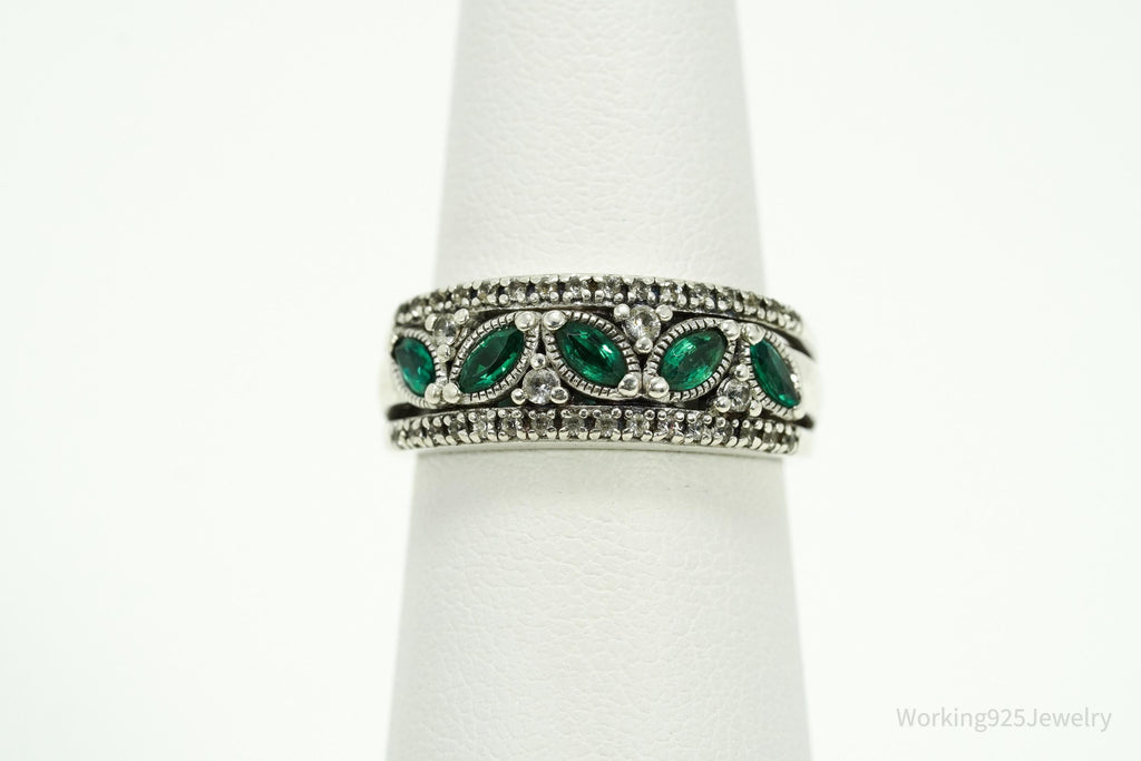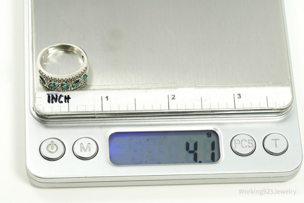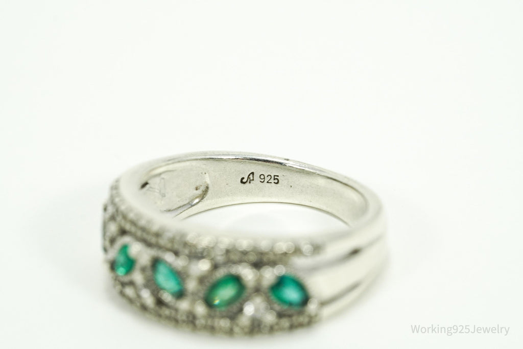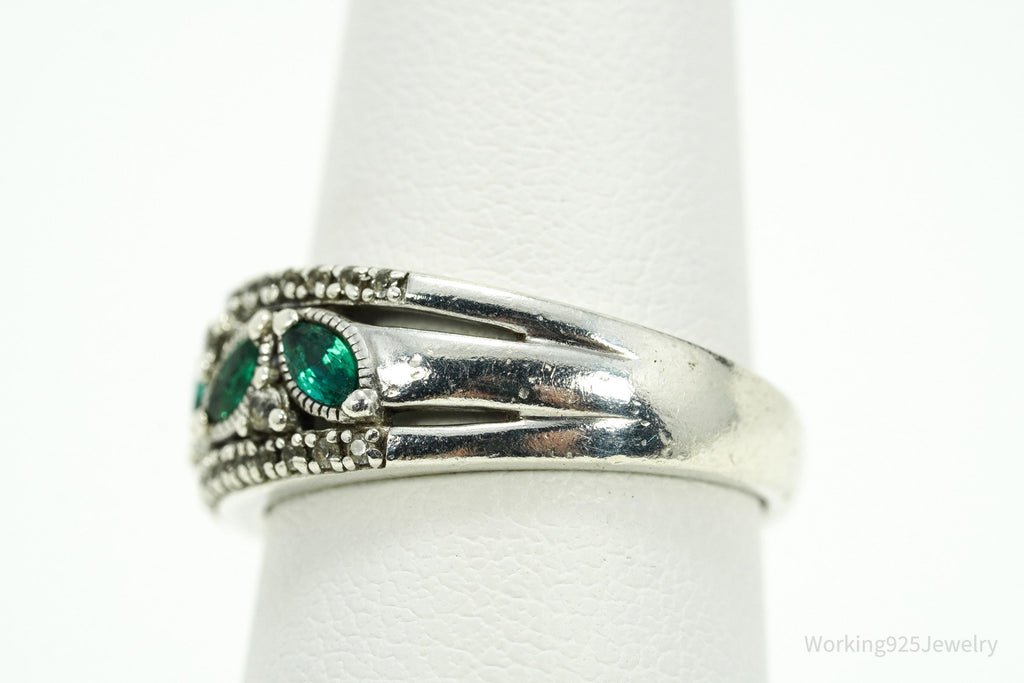 Vintage Emerald & White Sapphire Sterling Silver Ring - Size 6