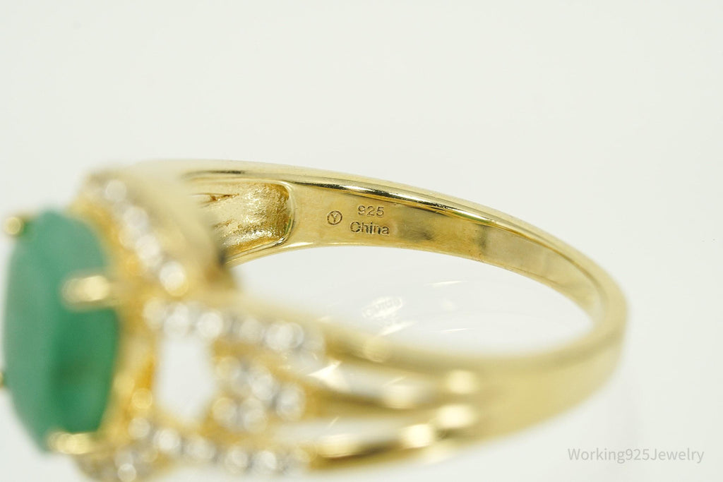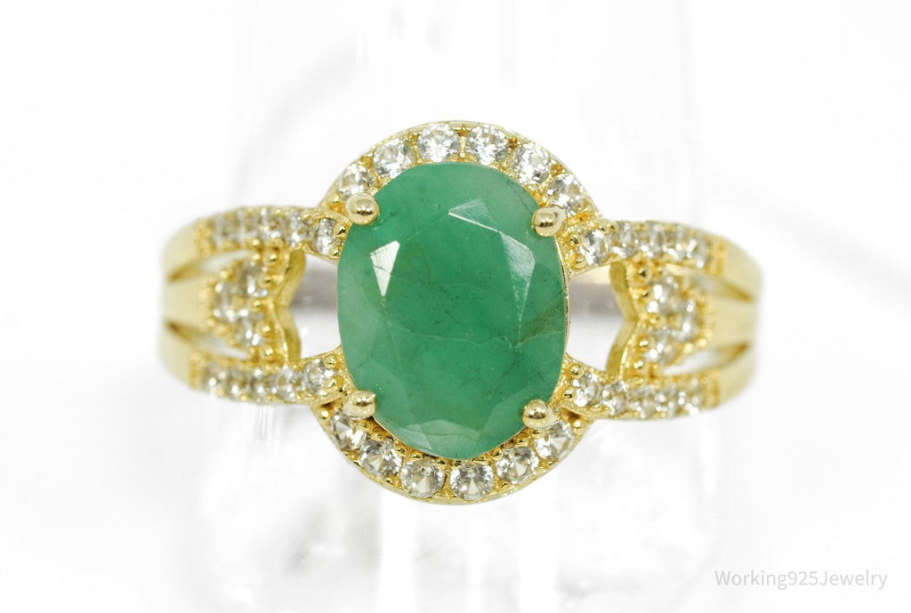 Vintage Emerald & White Topaz Gold Vermeil Sterling Silver Ring Size 8