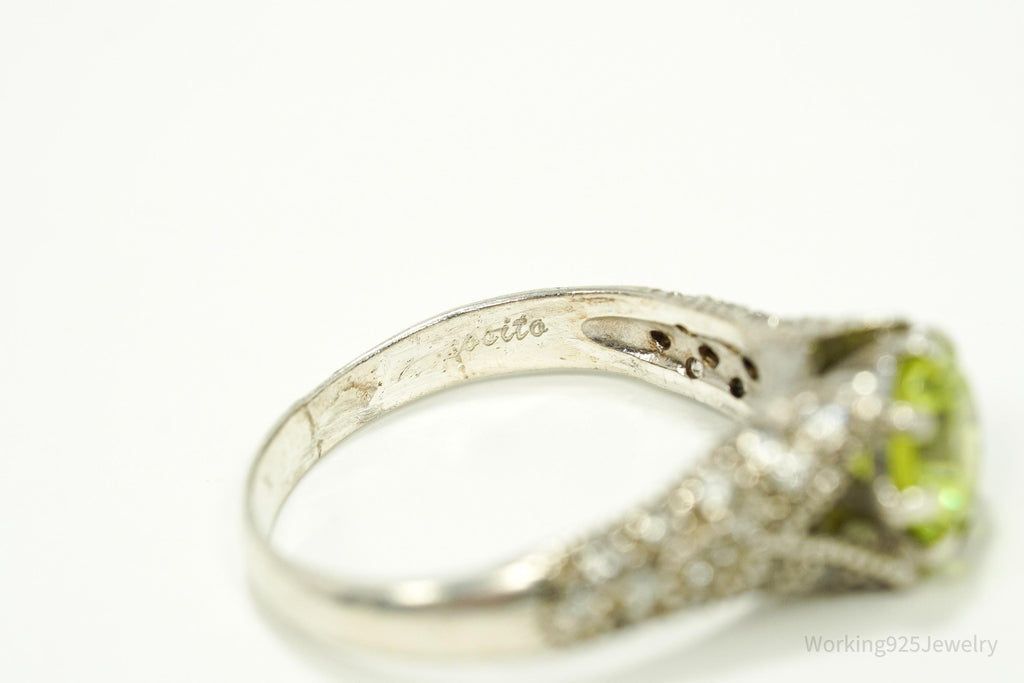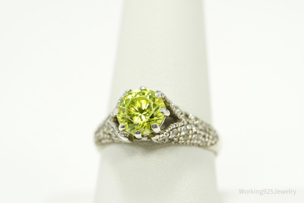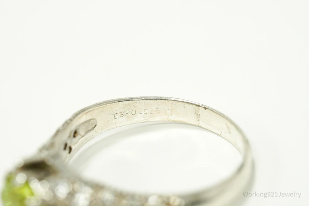 Vintage Espo Green & White Cubic Zirconia Sterling Silver Ring - Size 9