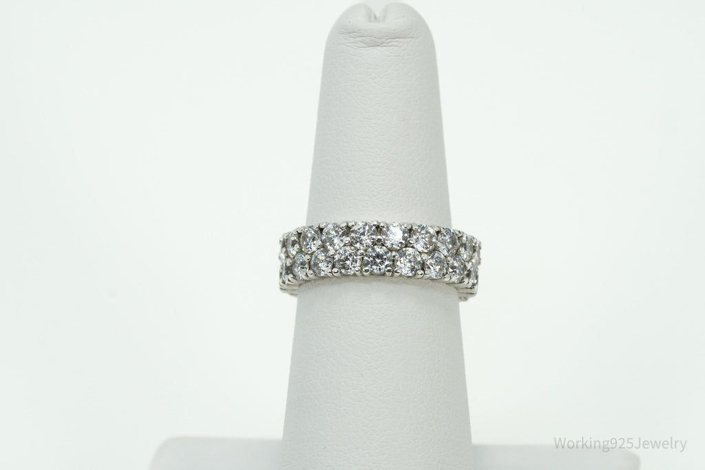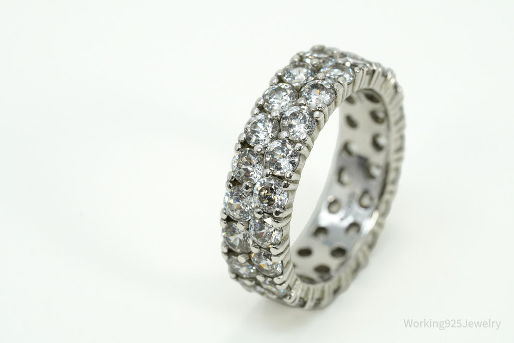 Vintage Eternity Band Cubic Zirconia Platinum Clad Sterling Silver Ring - Sz 6