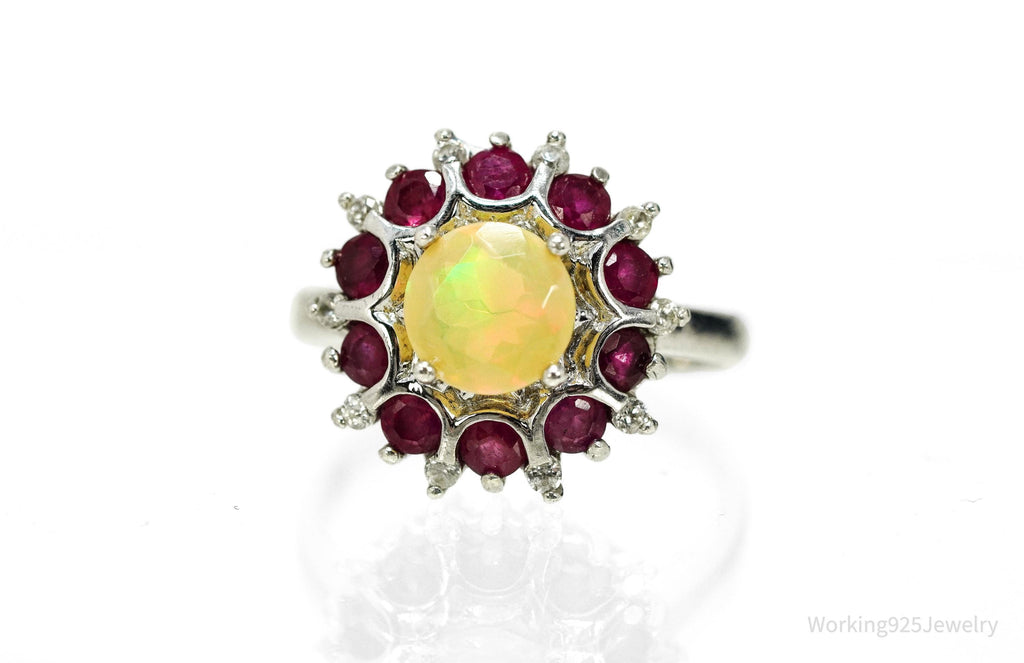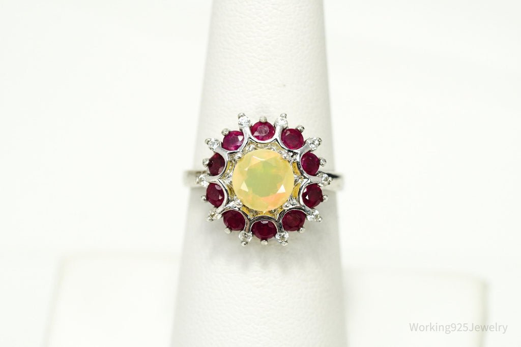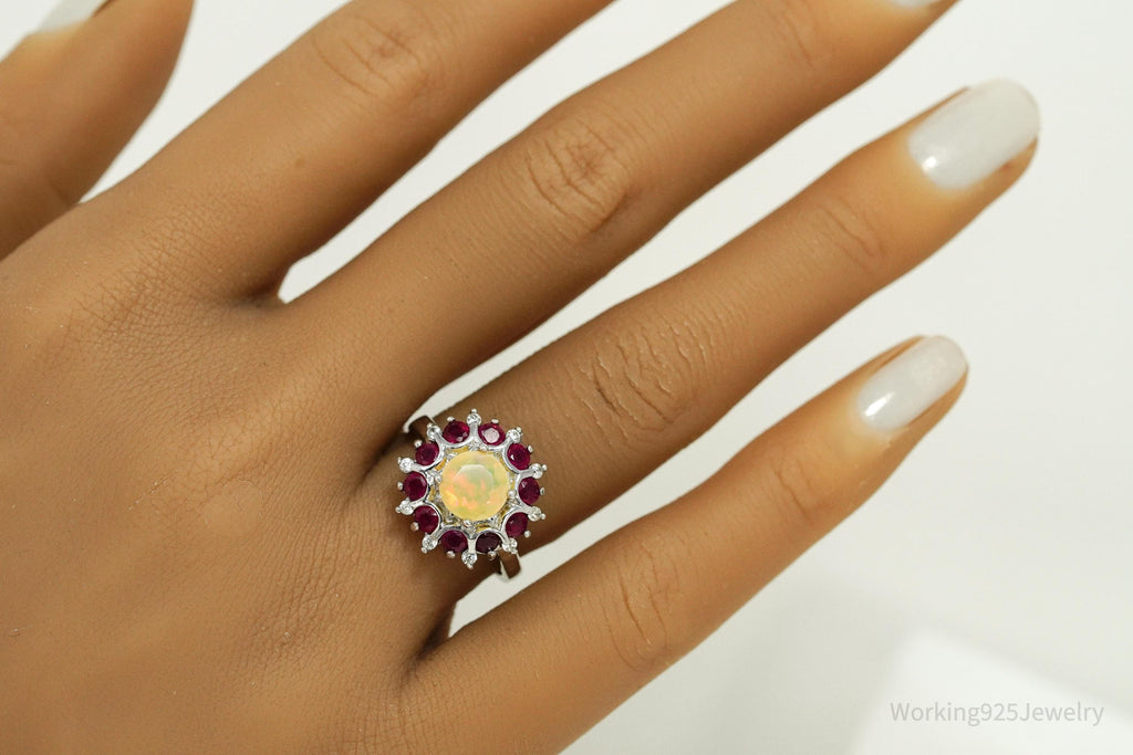 Vintage Ethiopian Opal & Ruby Sterling Silver Ring - Size 7