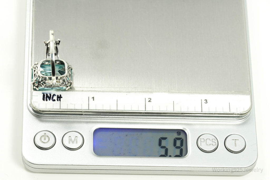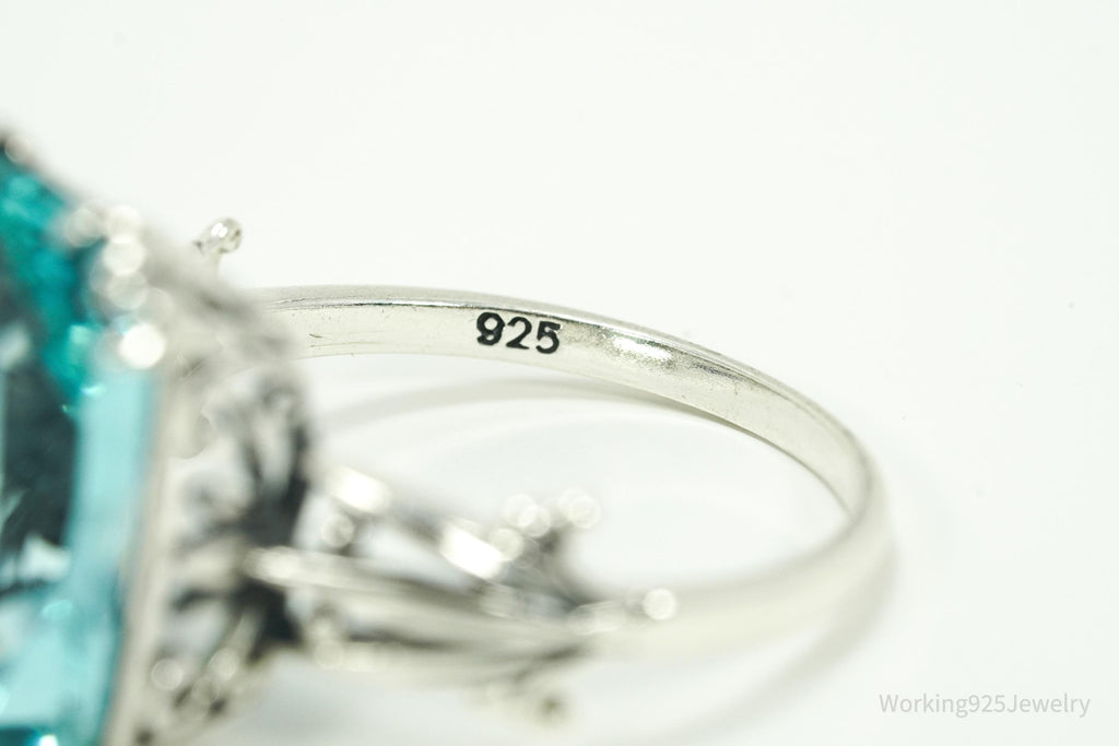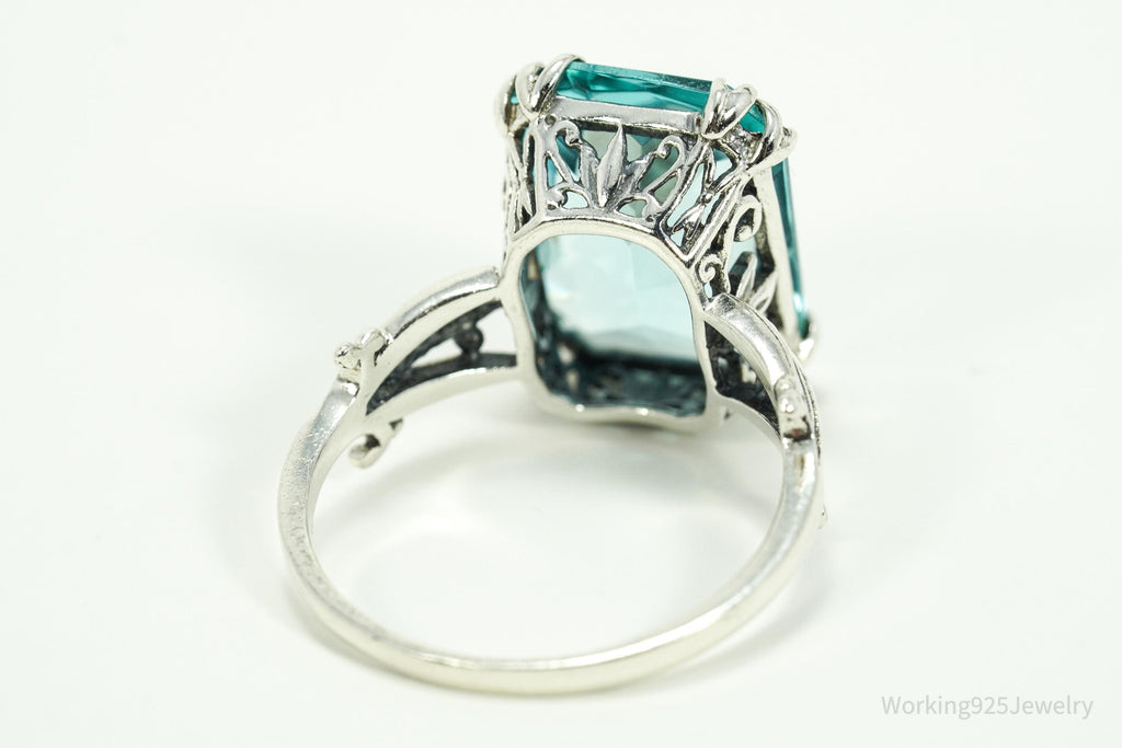 Vintage Faux Glass Blue Topaz Sterling Silver Plated Ring - Size 11.5