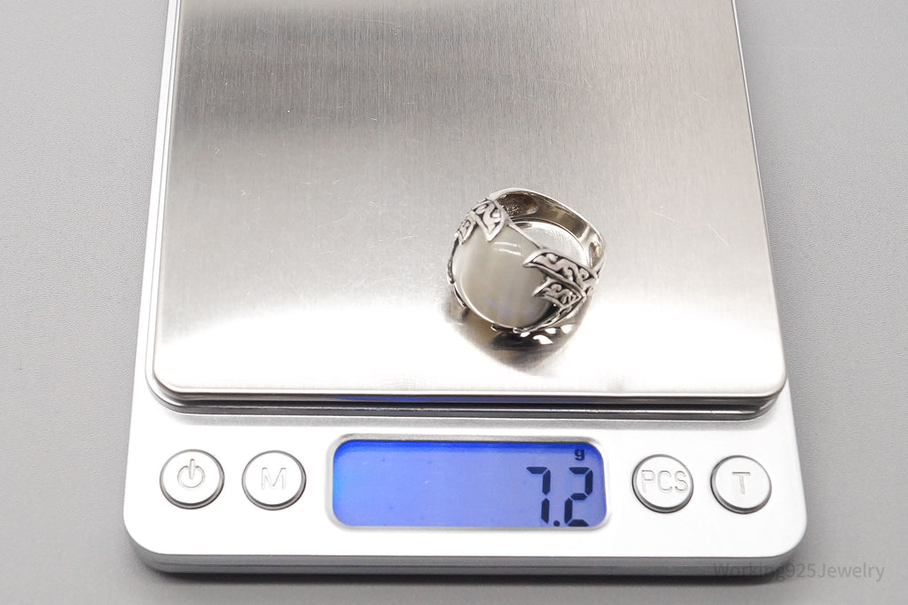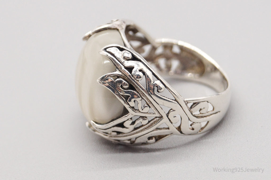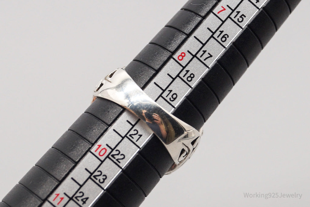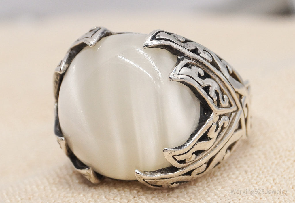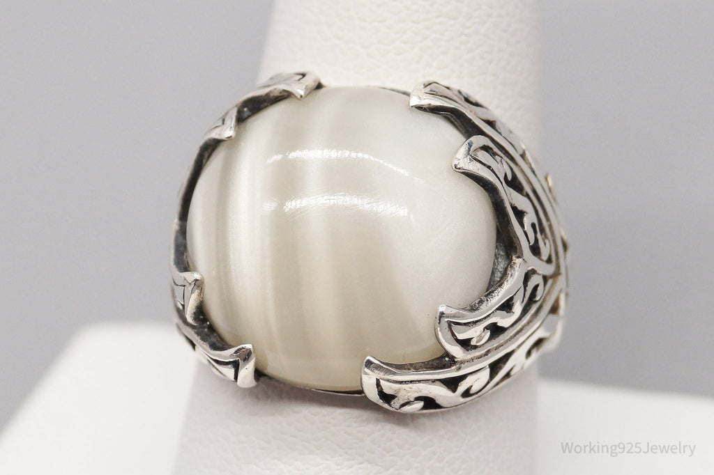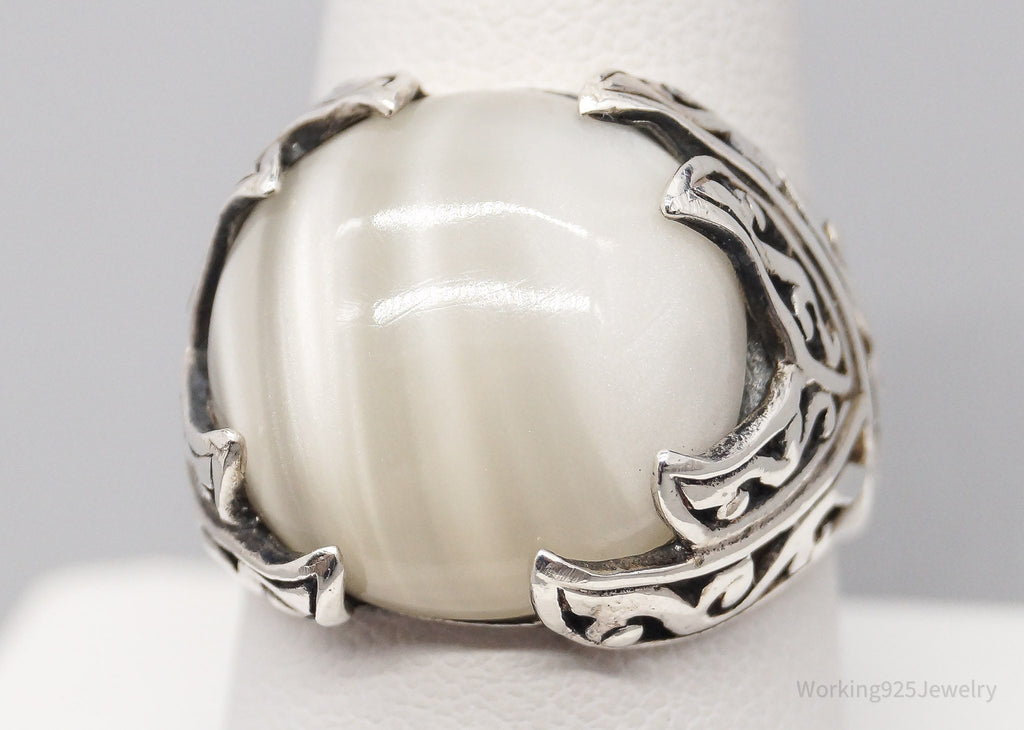 Vintage Faux White Striped Stone Sterling Silver Ring - Size 9