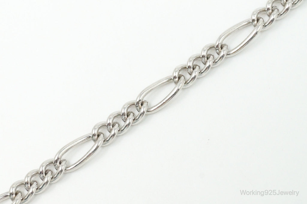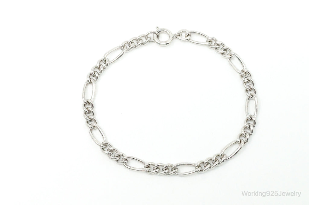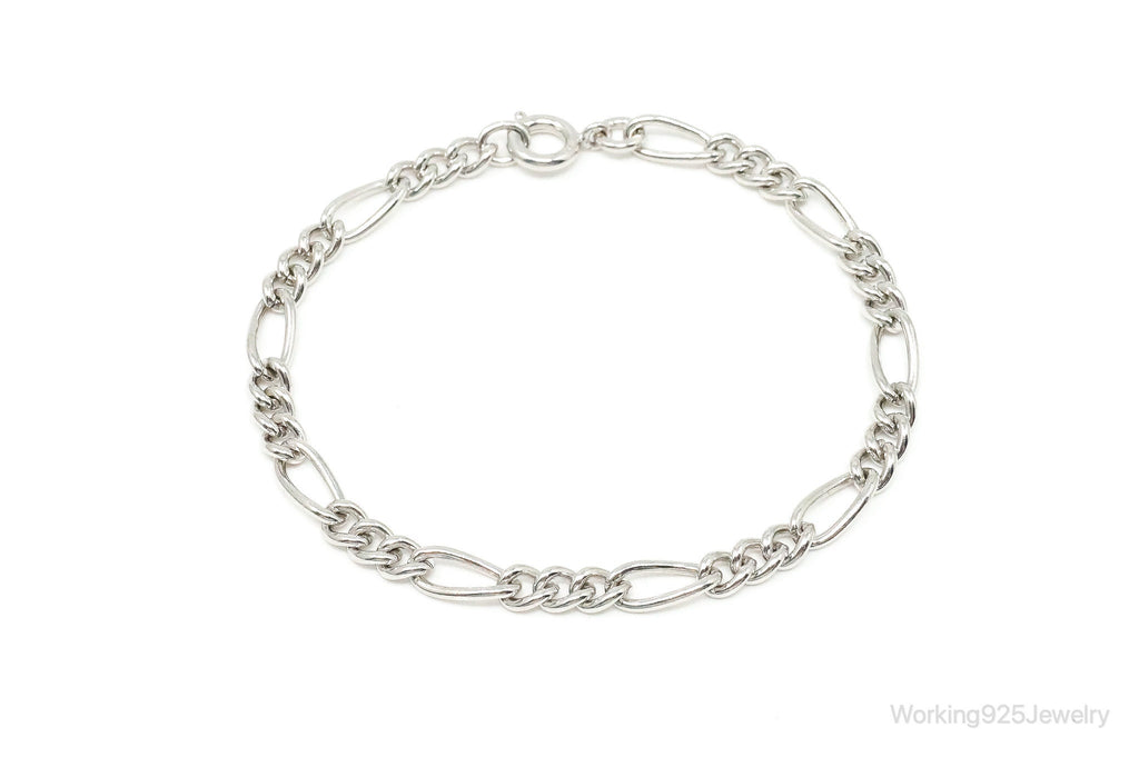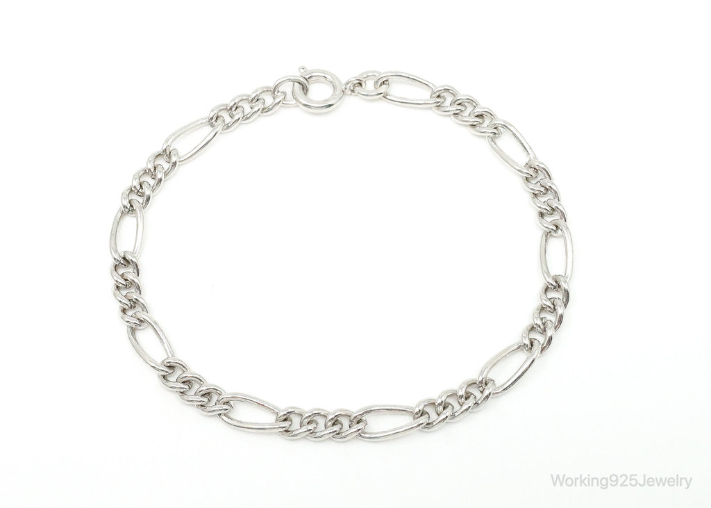 Vintage Figaro Chain Link Sterling Silver Charm Bracelet
