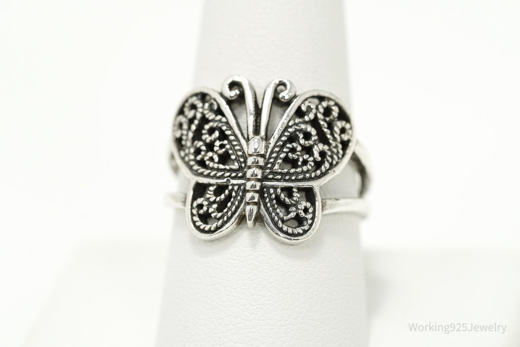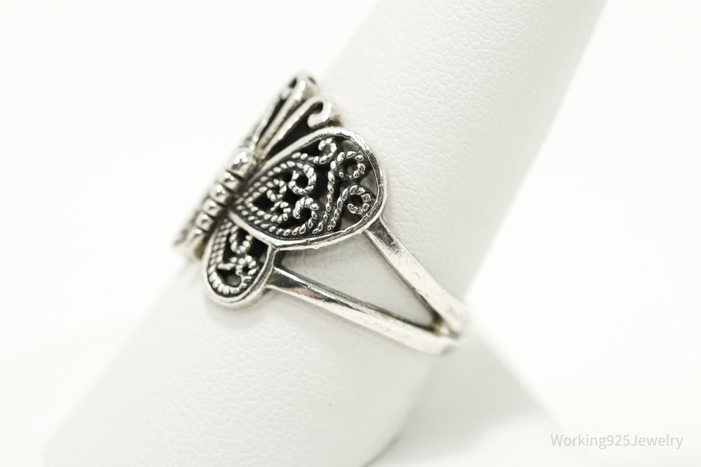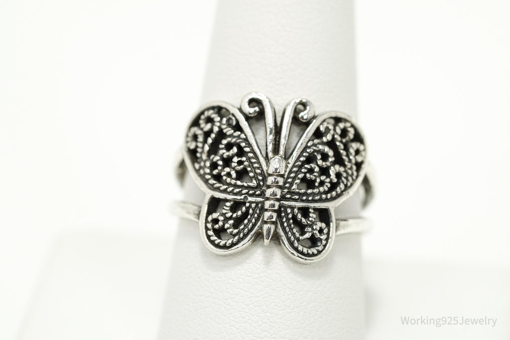 Vintage Filigree Butterfly Sterling Silver Ring - Size 9.25