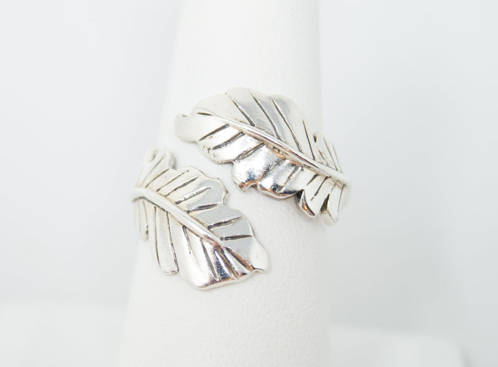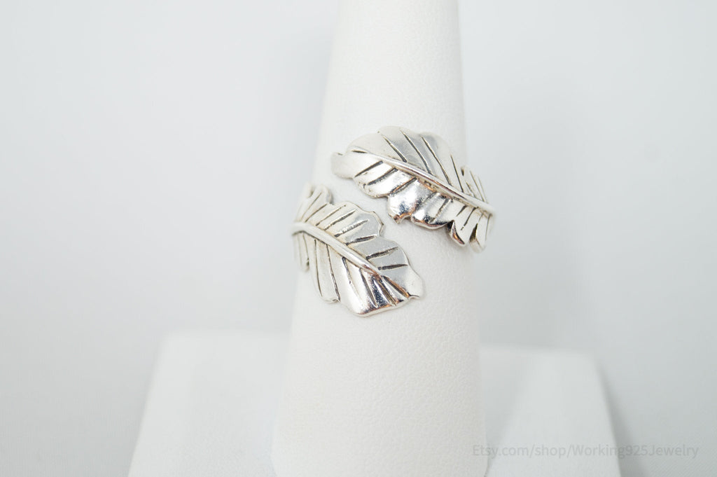 Vintage Floral Leaf Wrap Plant Lover Sterling Silver Ring - Sz 8