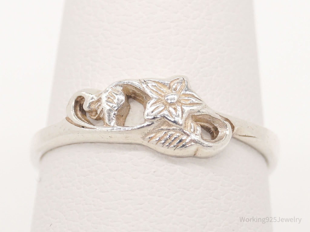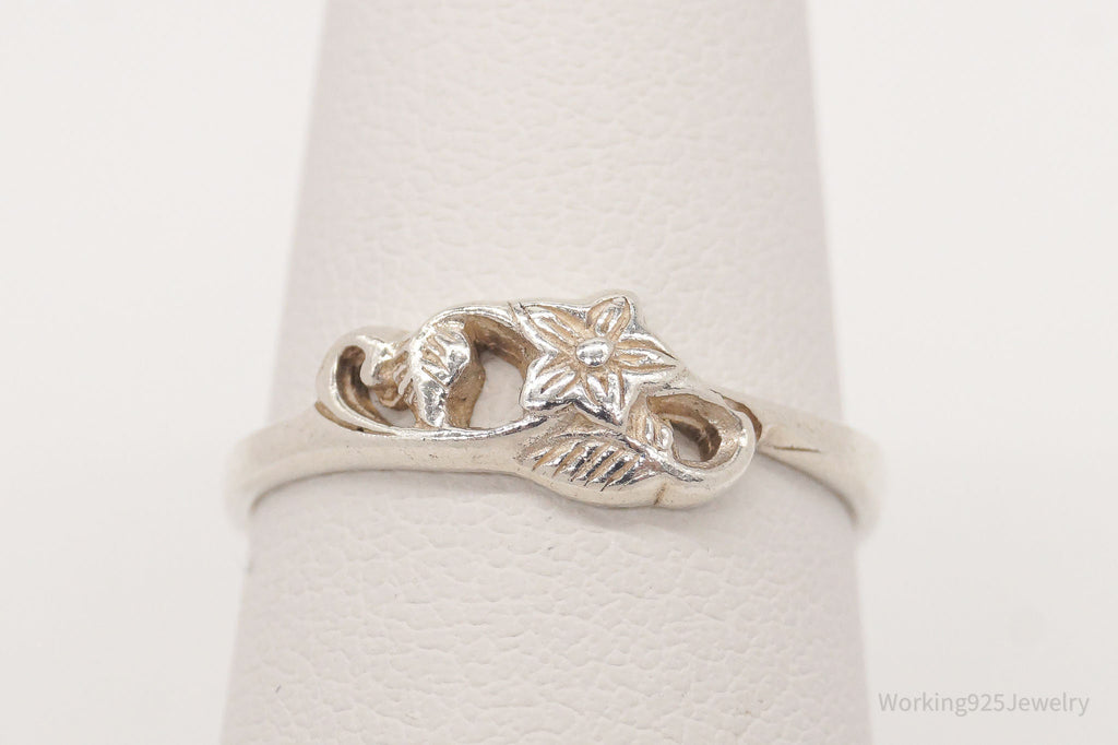 Vintage Flower Art Nouveau Style Sterling Silver Ring - Size 6.5