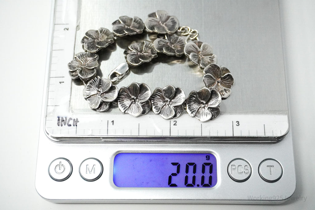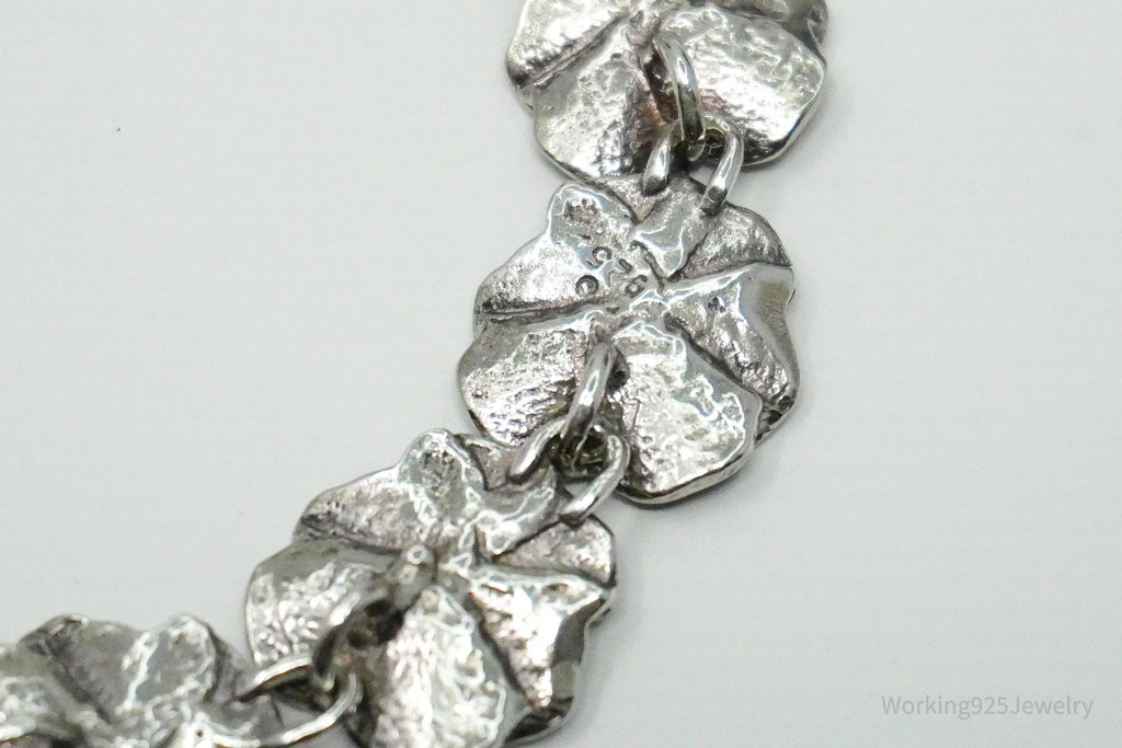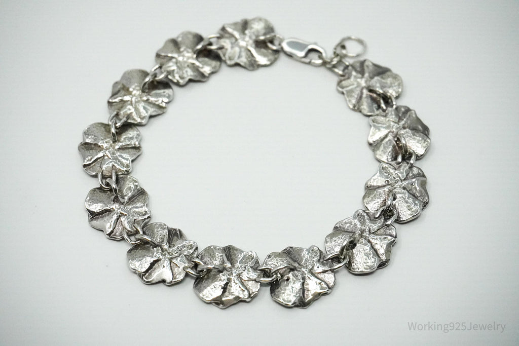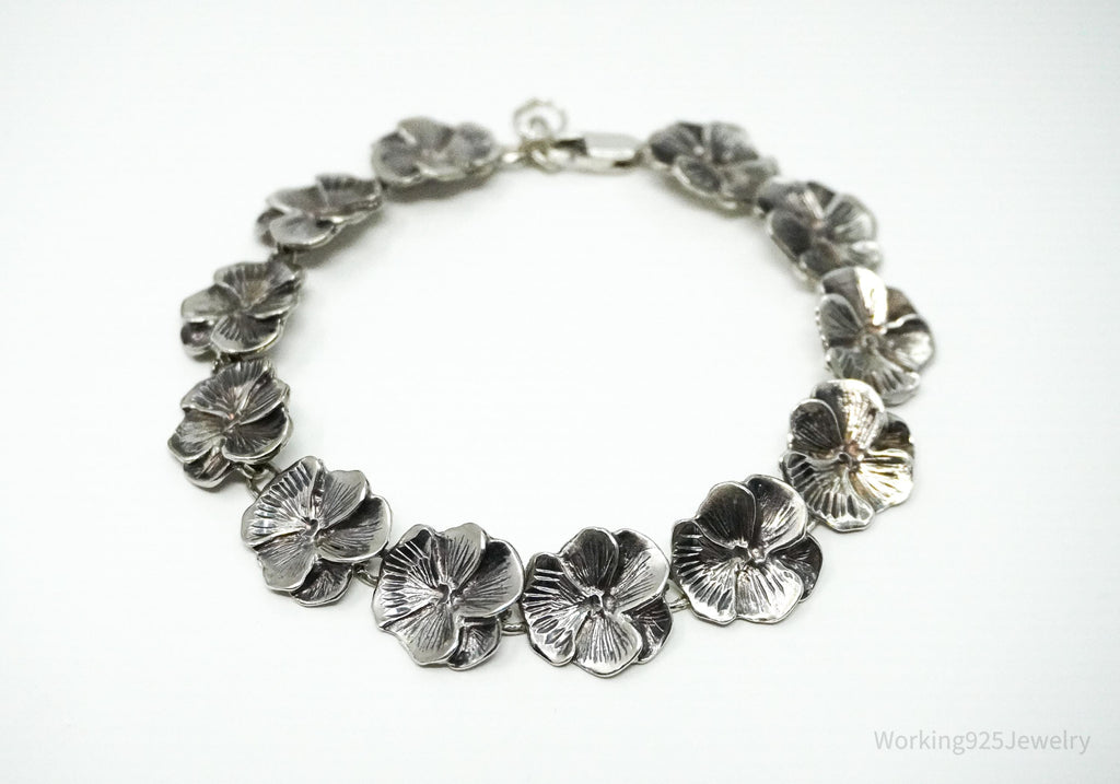 Vintage Flowers Sterling Silver Bracelet 8 1/8"