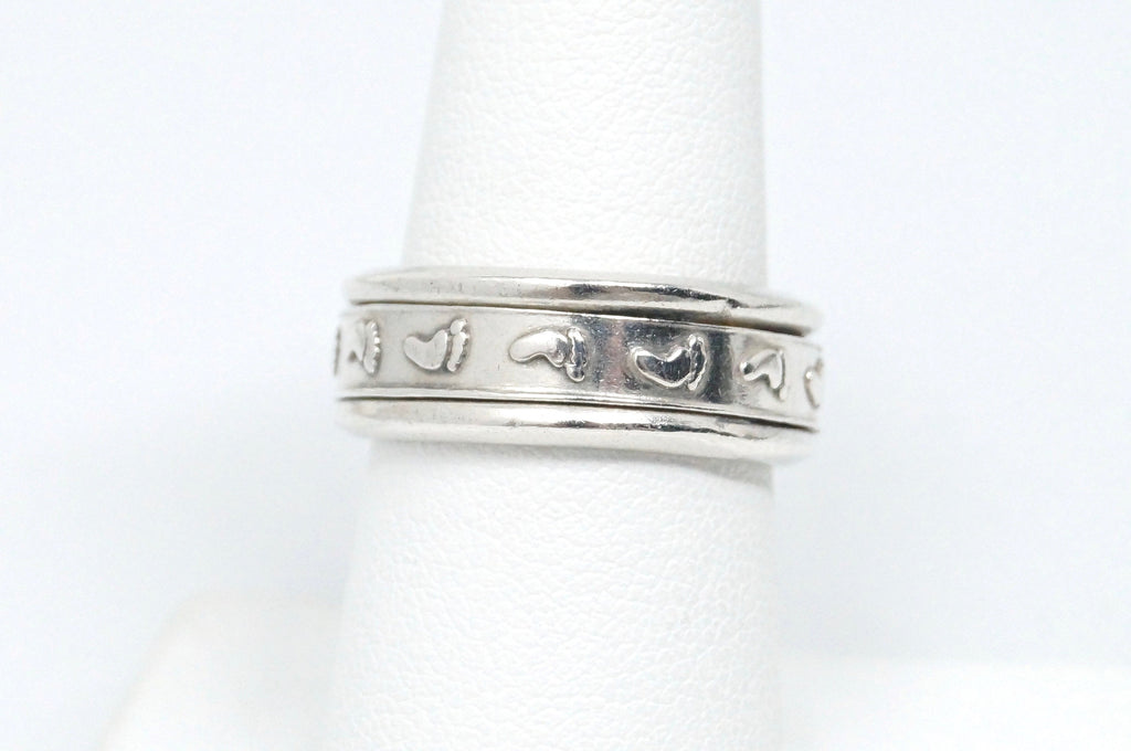 Vintage Foot Steps Path Prints Sterling Silver Spinner Band Ring - Size 7.75