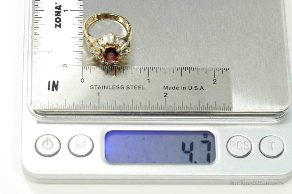 Vintage Garnet & Cubic Zirconia Gold Over Sterling Silver Ring Size 5.75