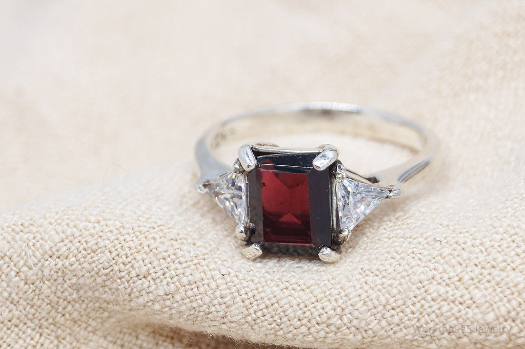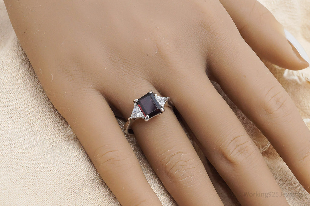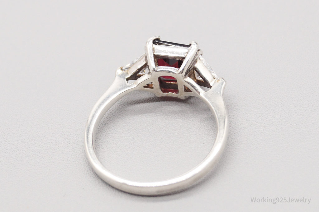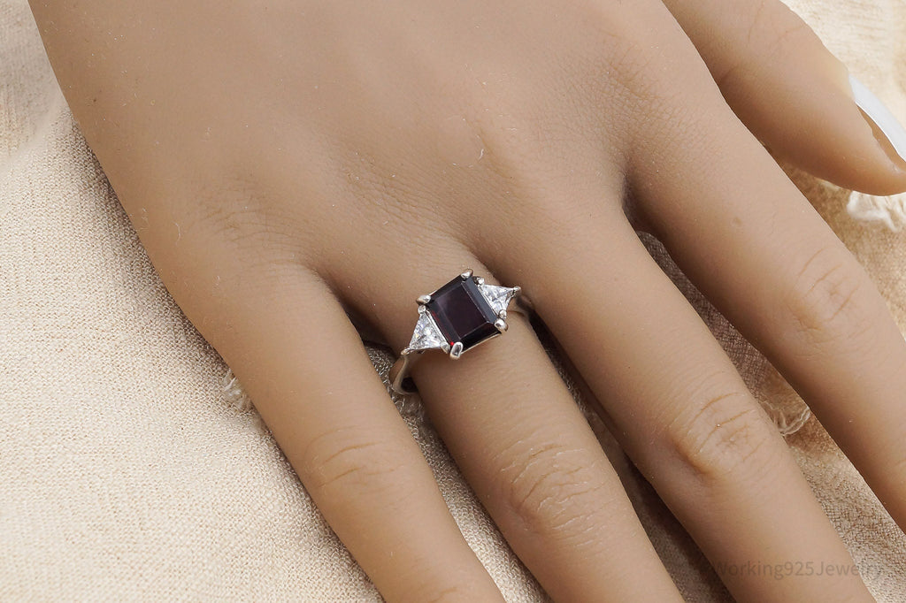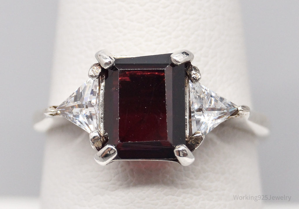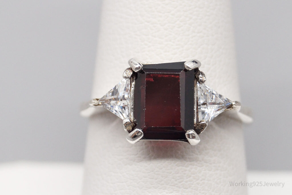 Vintage Garnet Cubic Zirconia Sterling Silver Ring - Size 8