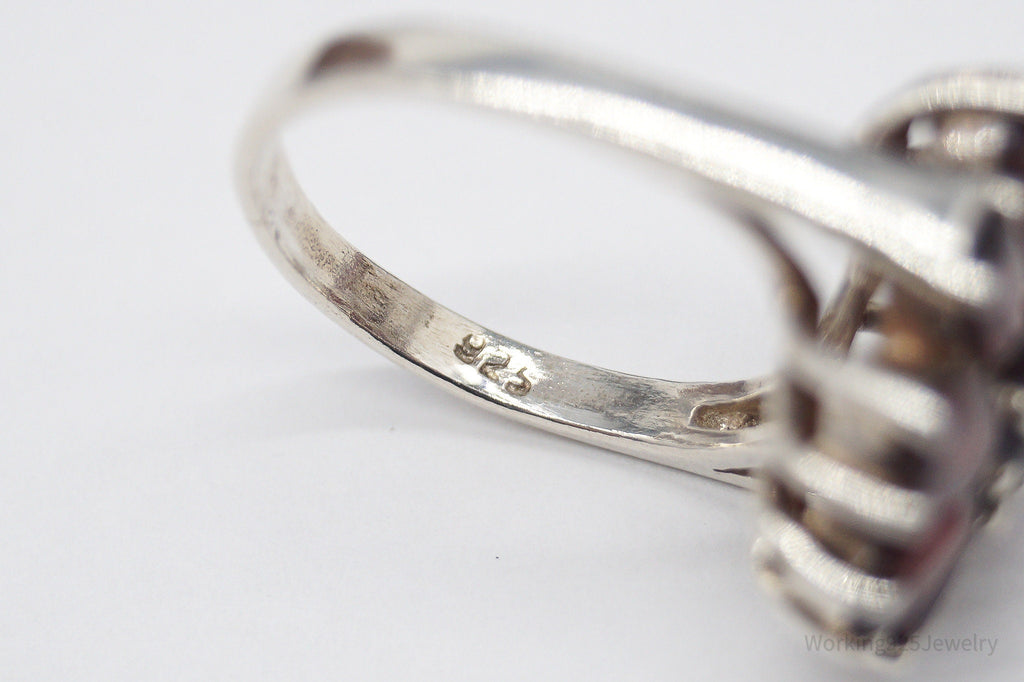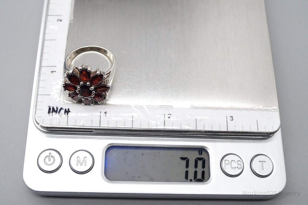 Vintage Garnet Flower Sterling Silver Ring - Size 8.25