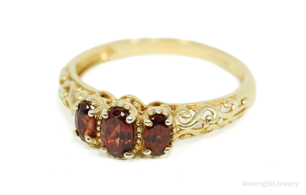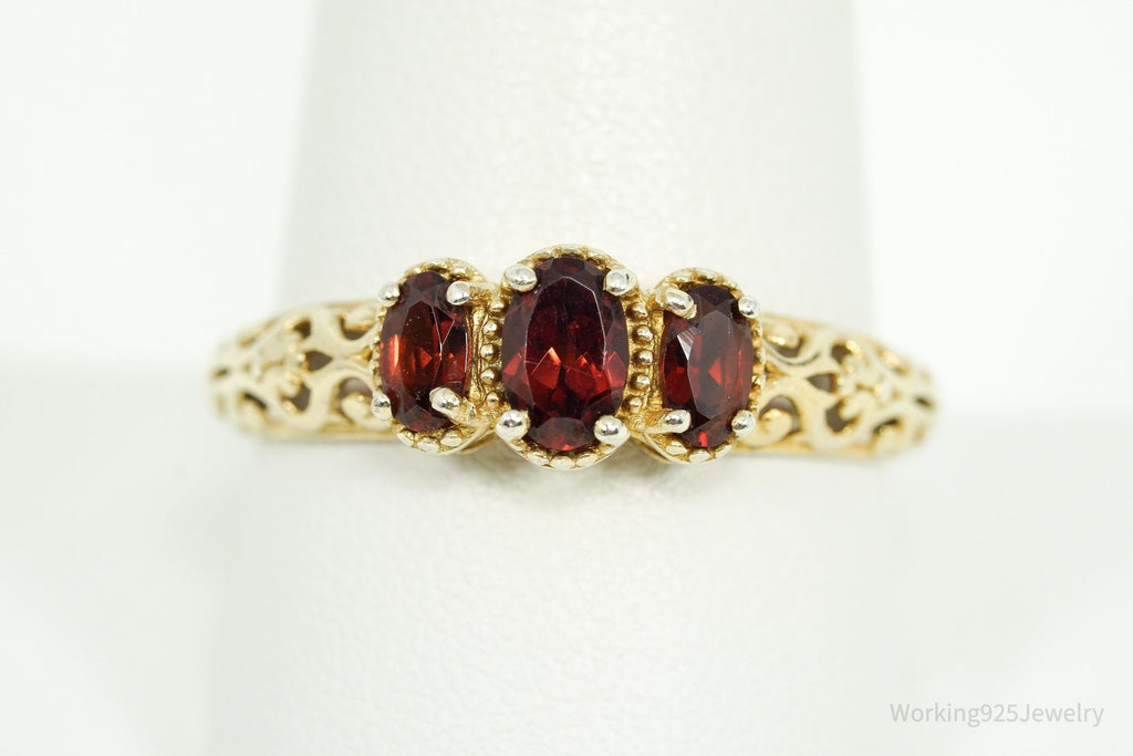 Vintage Garnet Gold Vermeil Sterling Silver Ring - Size 10.25