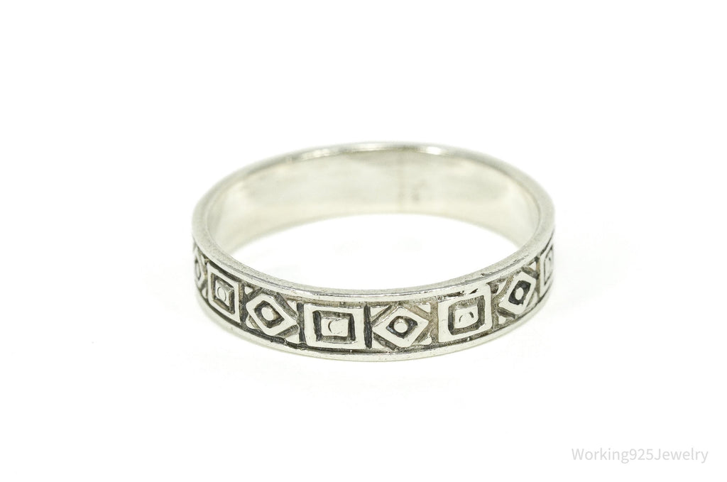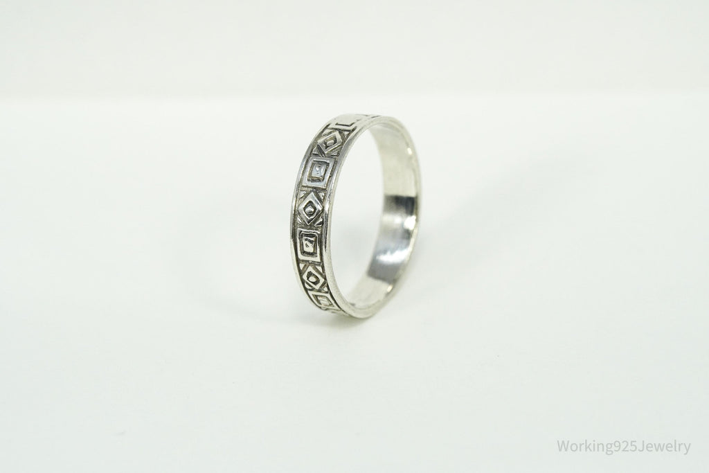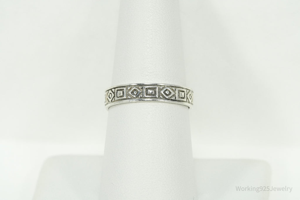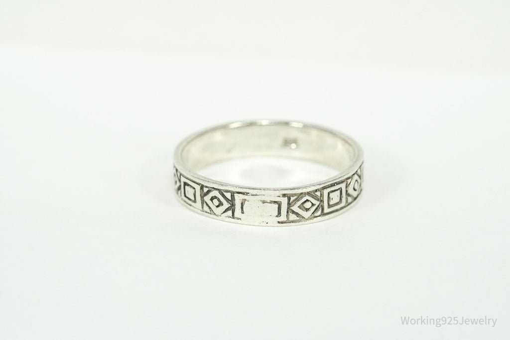 Vintage Geometric Viking Style Sterling Silver Band Ring - Size 8