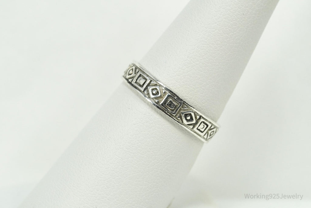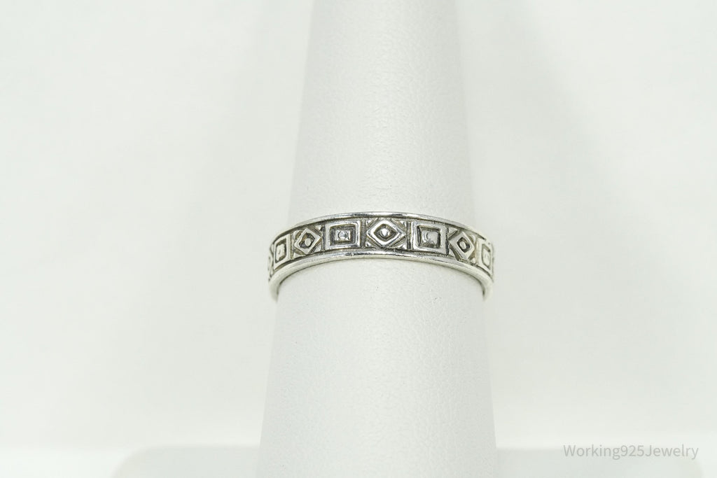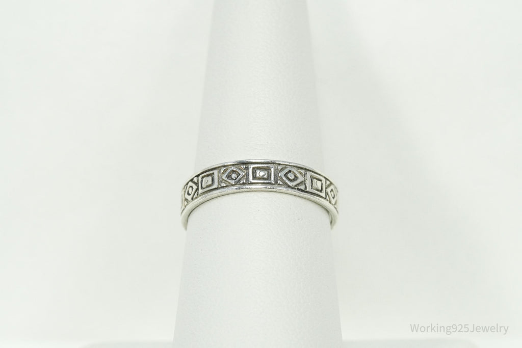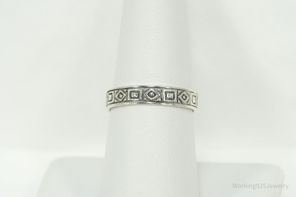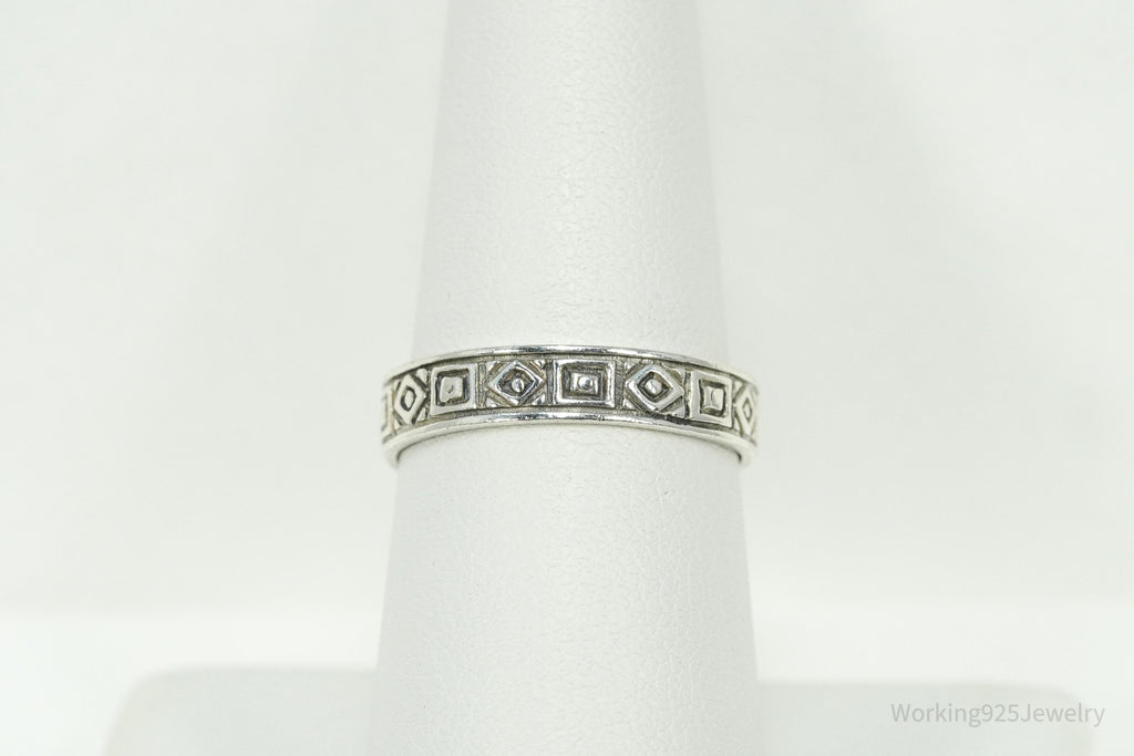Vintage Geometric Viking Style Sterling Silver Band Ring - Size 8