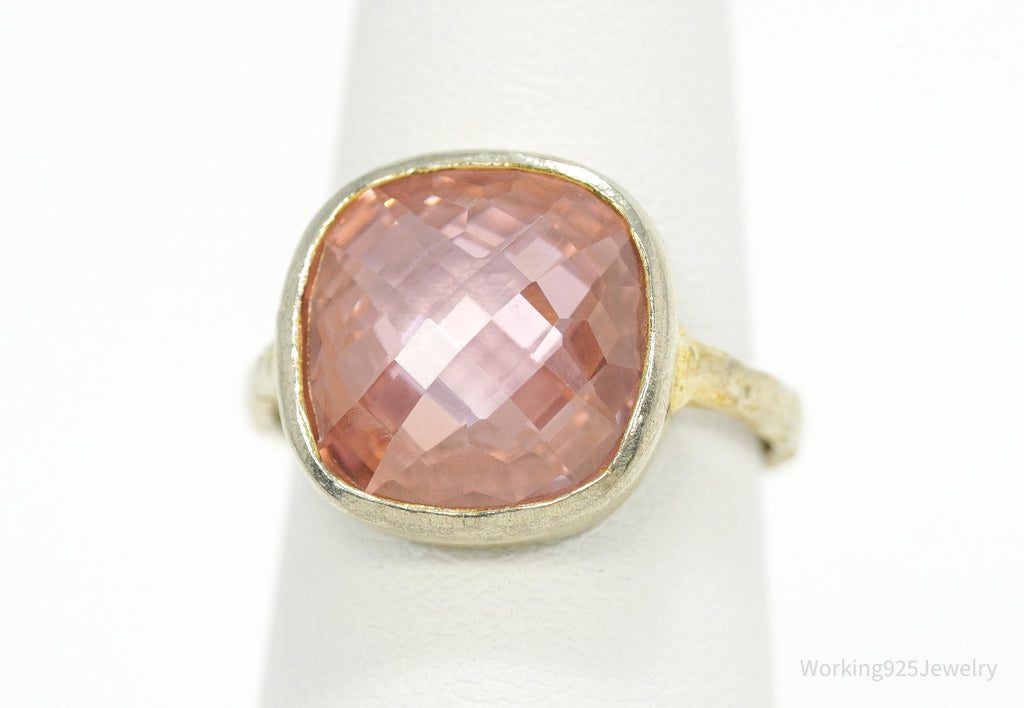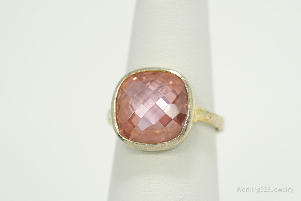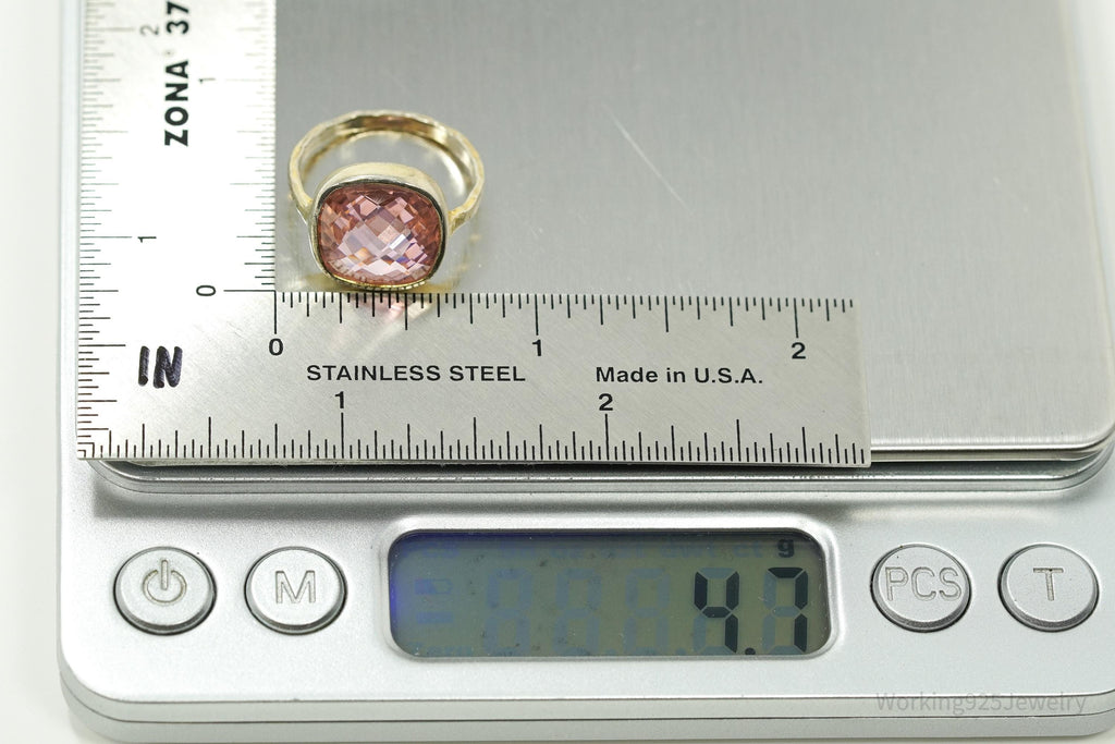 Vintage Gioielli Pink Tourmaline Gold Wash Sterling Silver Ring - Size 6.25