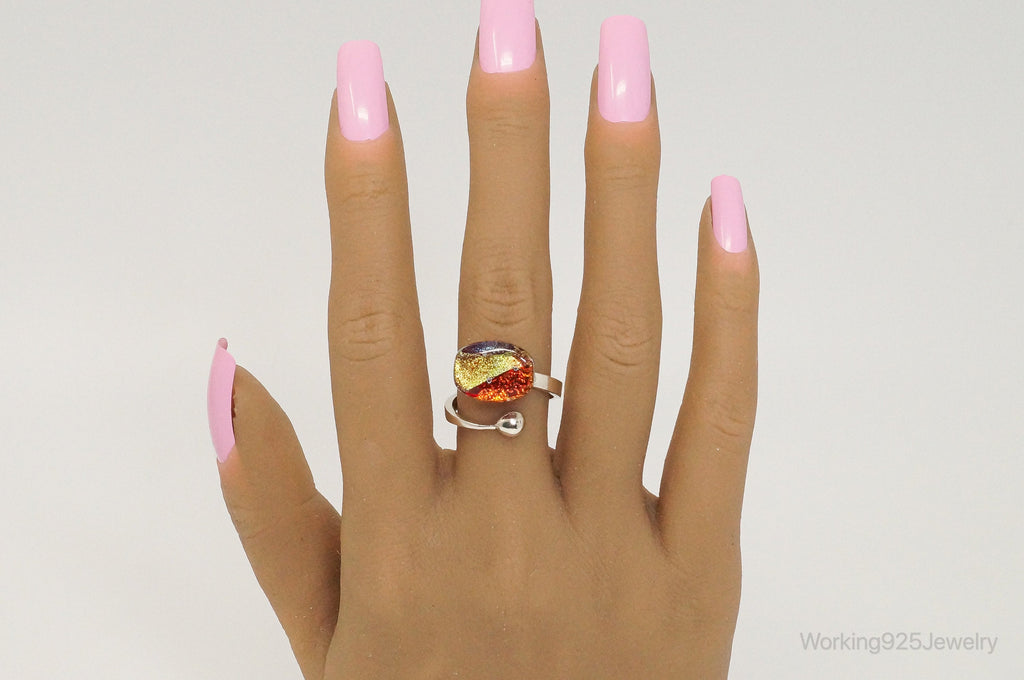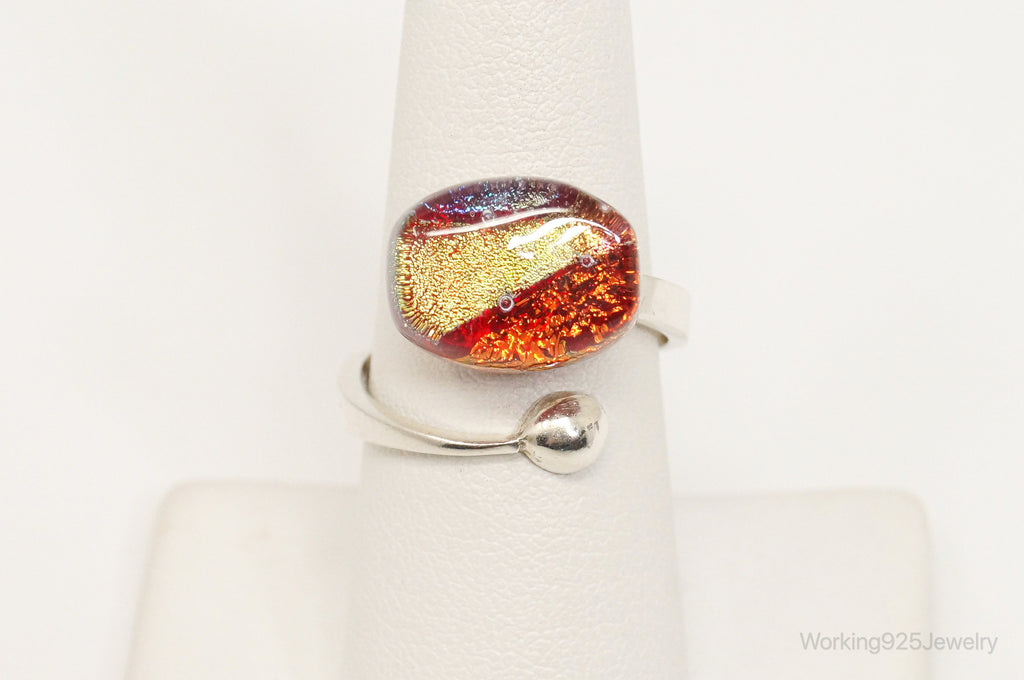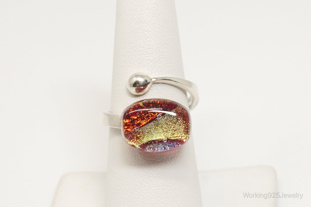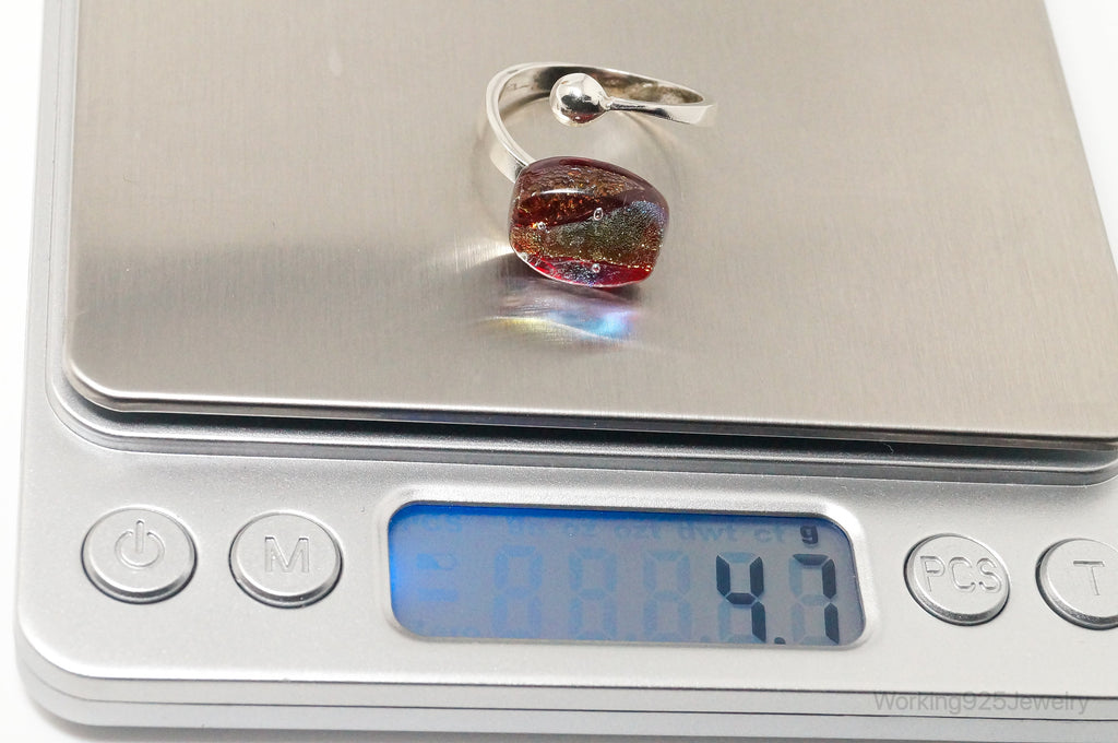 Vintage Glass Murano Sterling Silver Wrap Ring - Sz 7.75 Adjustable