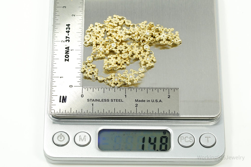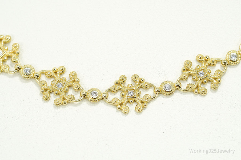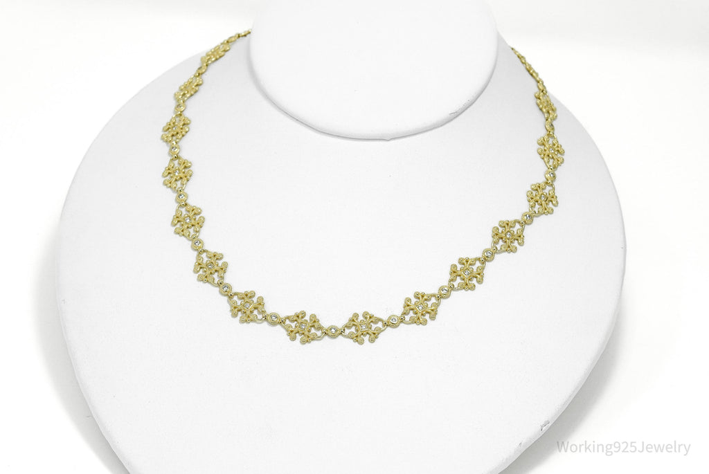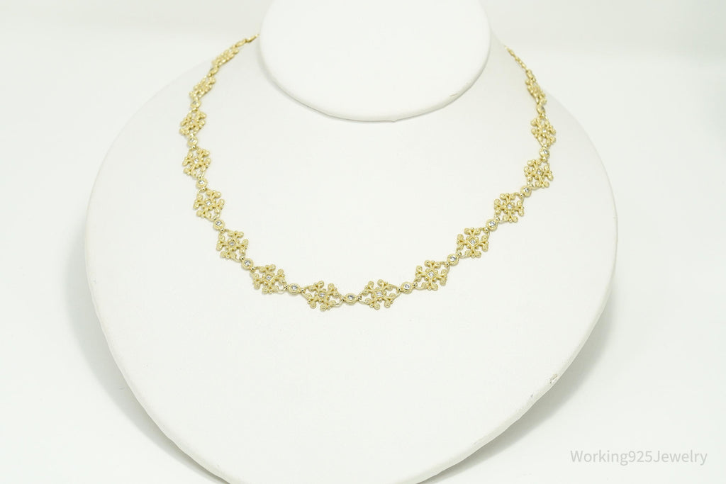 Vintage Gold Vermeil Cubic Zirconia Sterling Silver Necklace 16"