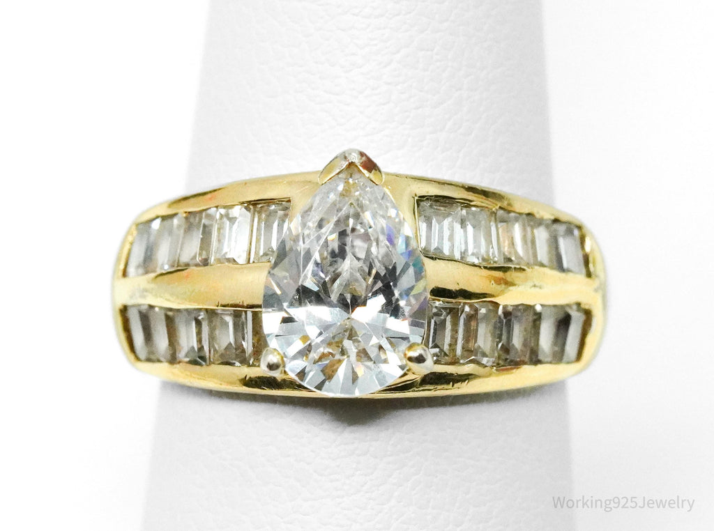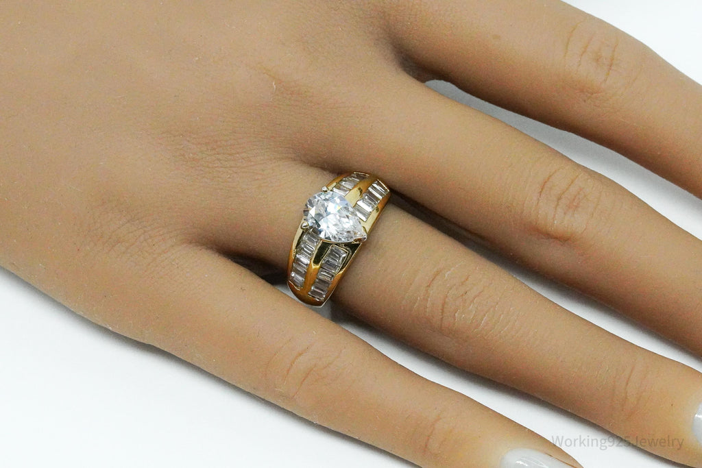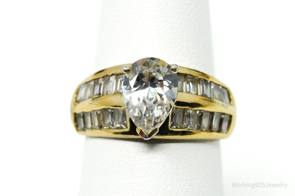 Vintage Gold Vermeil Cubic Zirconia Sterling Silver Ring - Size 7