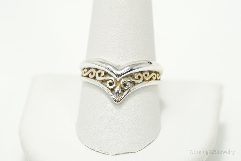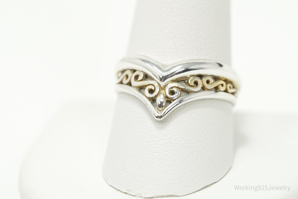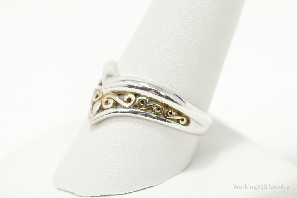 Vintage Gold Washed Scrolls Sterling Silver Ring - Size 10