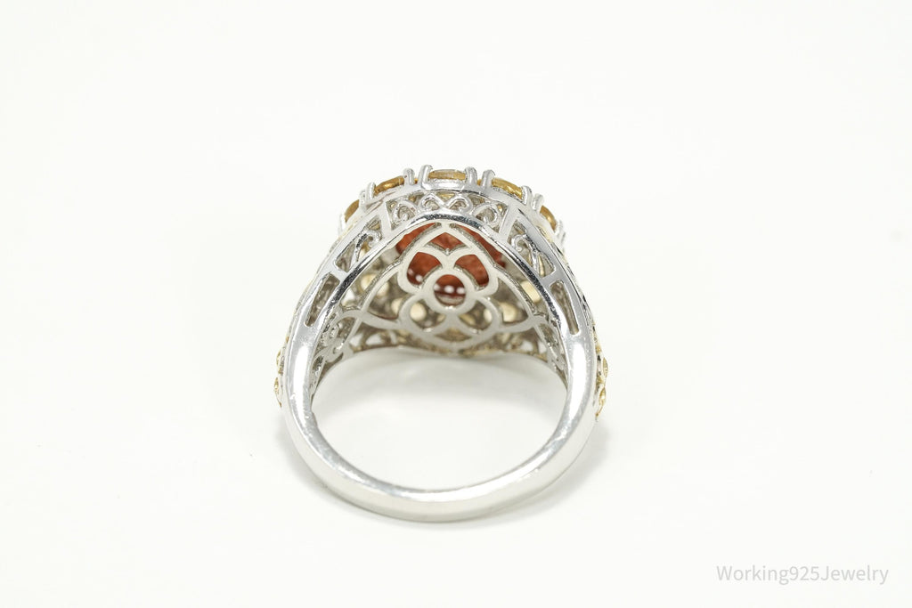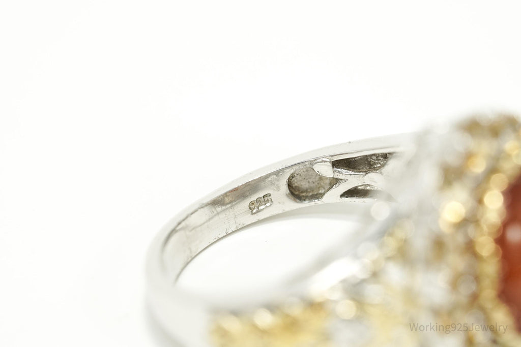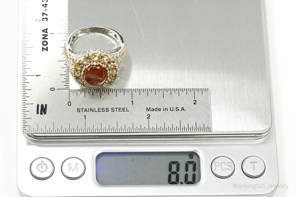 Vintage Goldstone & Citrine Gold Vermeil Sterling Silver Ring - Size 10.25