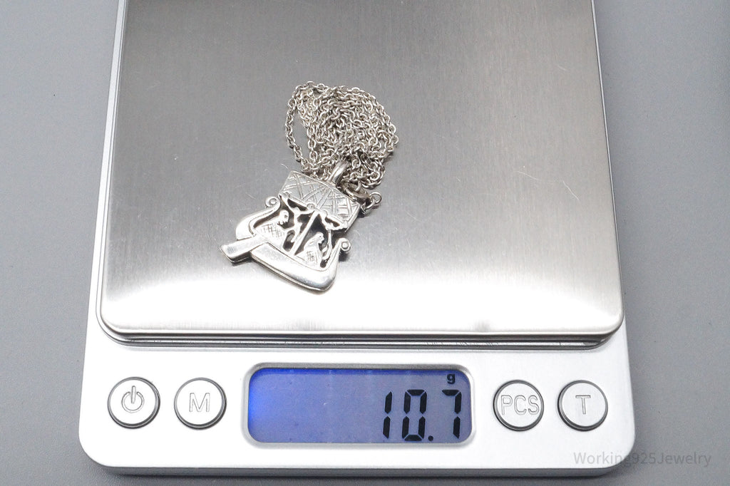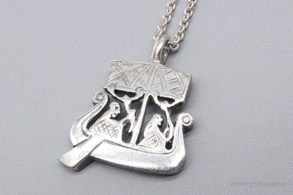 Vintage Gotland Viking Ship Sterling Silver Necklace - 17"