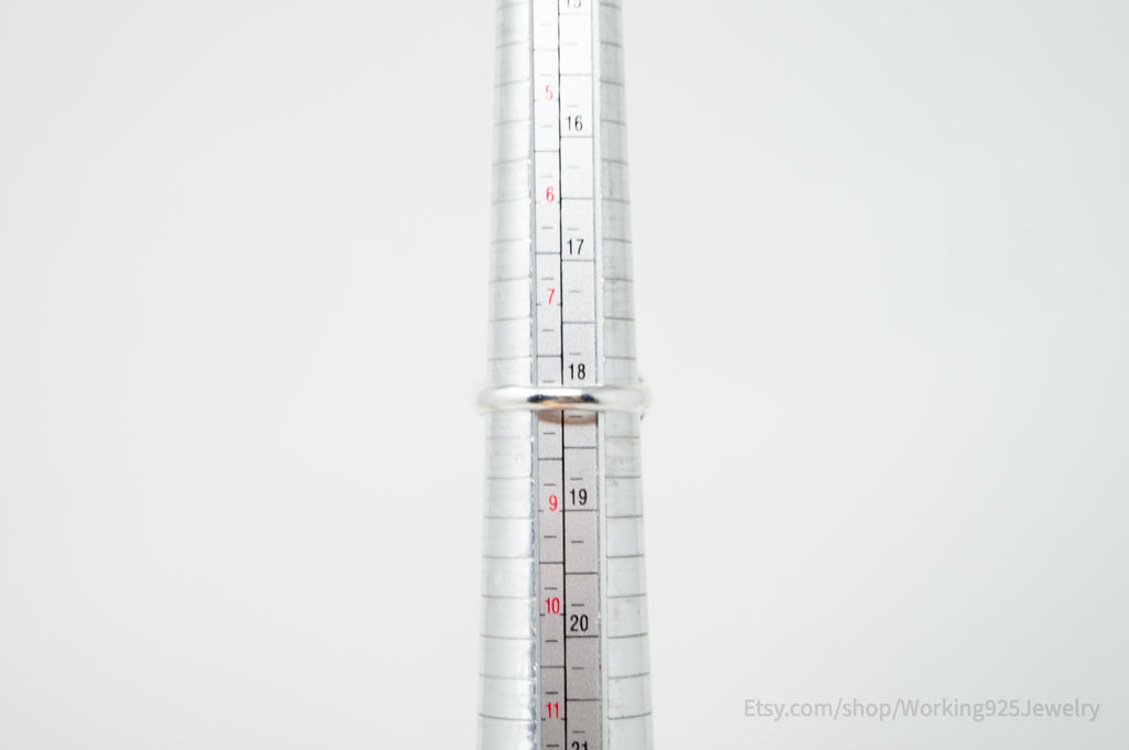 Ring Listings: It is sometimes difficult to determine how a ring will fit without being able to try it on. I always recommend taking your favorite ring to a local jeweler and comparing the way that it sits on a mandrel (ring sizer) with the pictures in the listings prior to purchase. Sometimes wide band rings fit a little differently and I always want my customers to be 100% happy with their purchases! Please let me know if I can help by offering more pictures for size comparison.