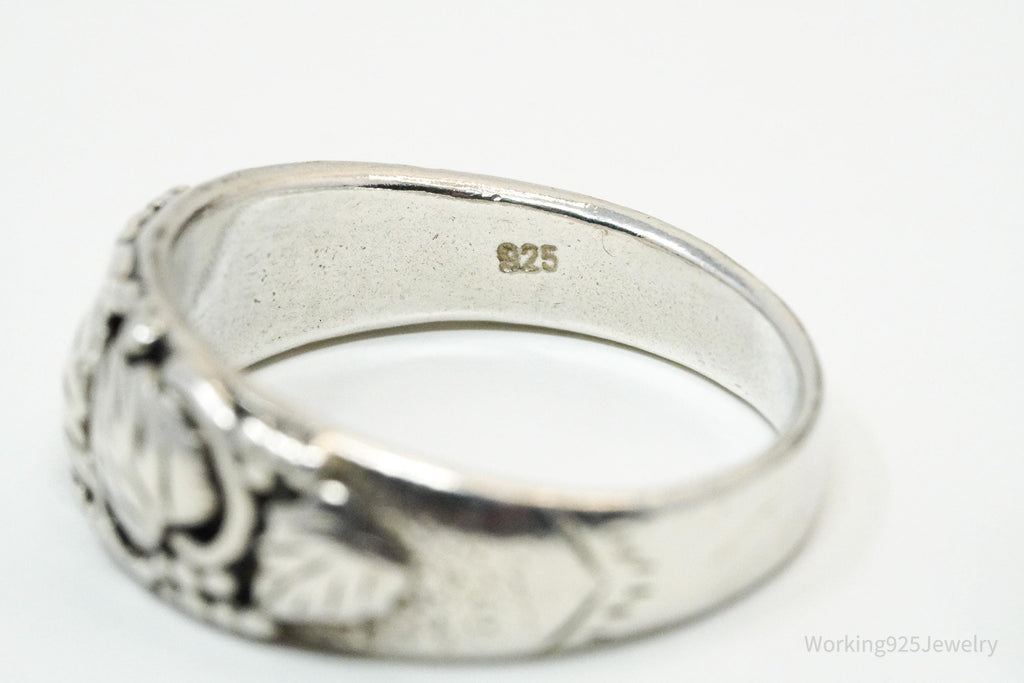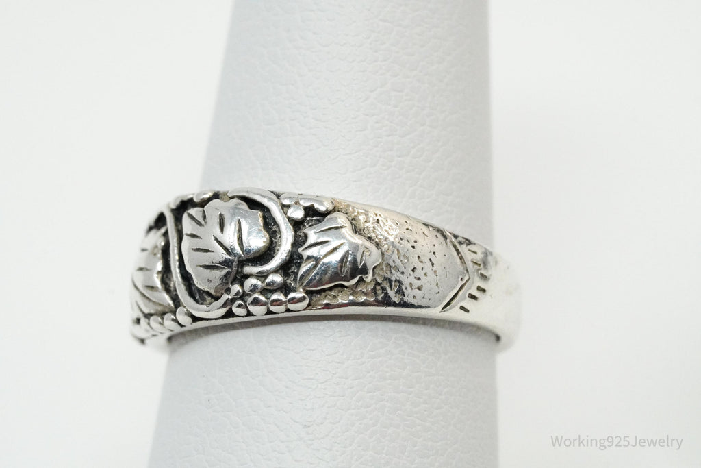 Vintage Grape Vine Leaves Sterling Silver Band Ring - Size 6.75