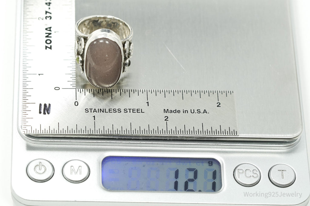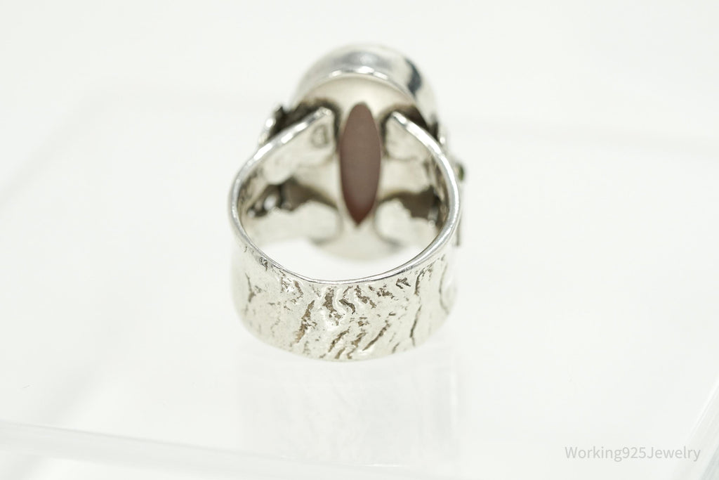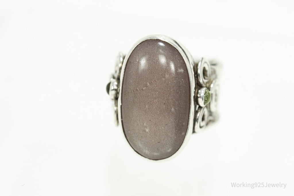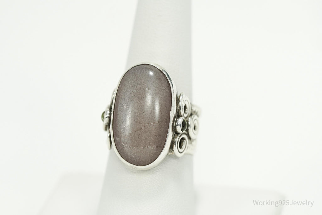 Vintage Gray Moonstone & Peridot Sterling Silver Ring Size 8