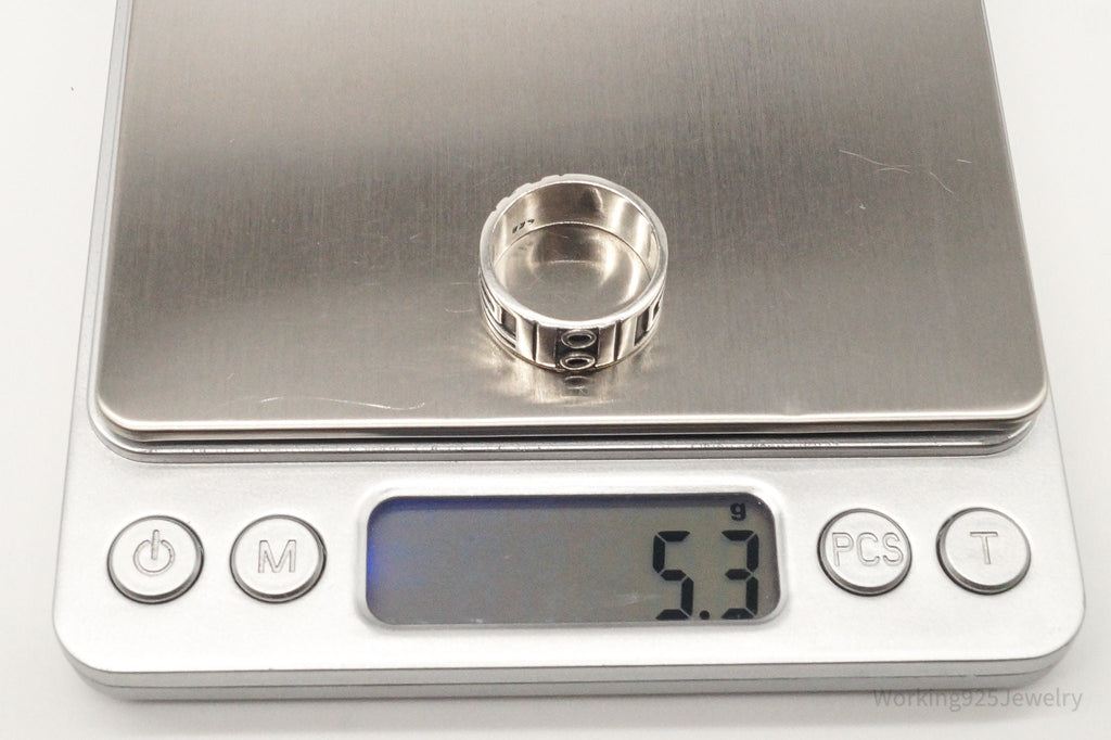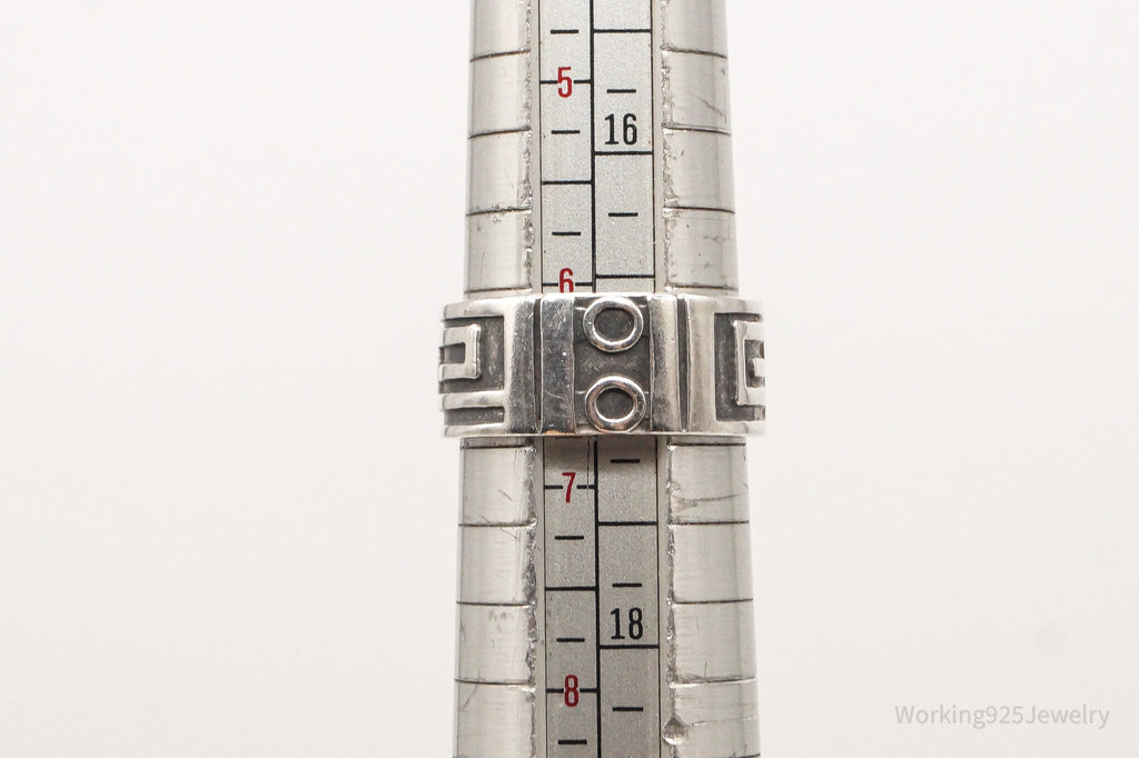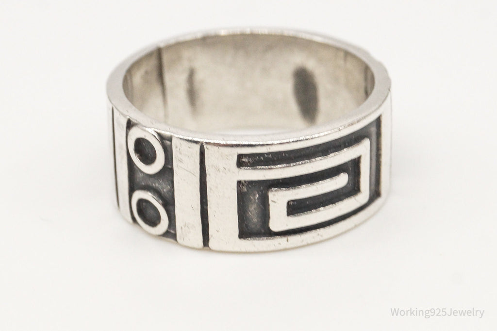 Vintage Greek Key Aztec Design Sterling Silver Band Ring - Size 6.75