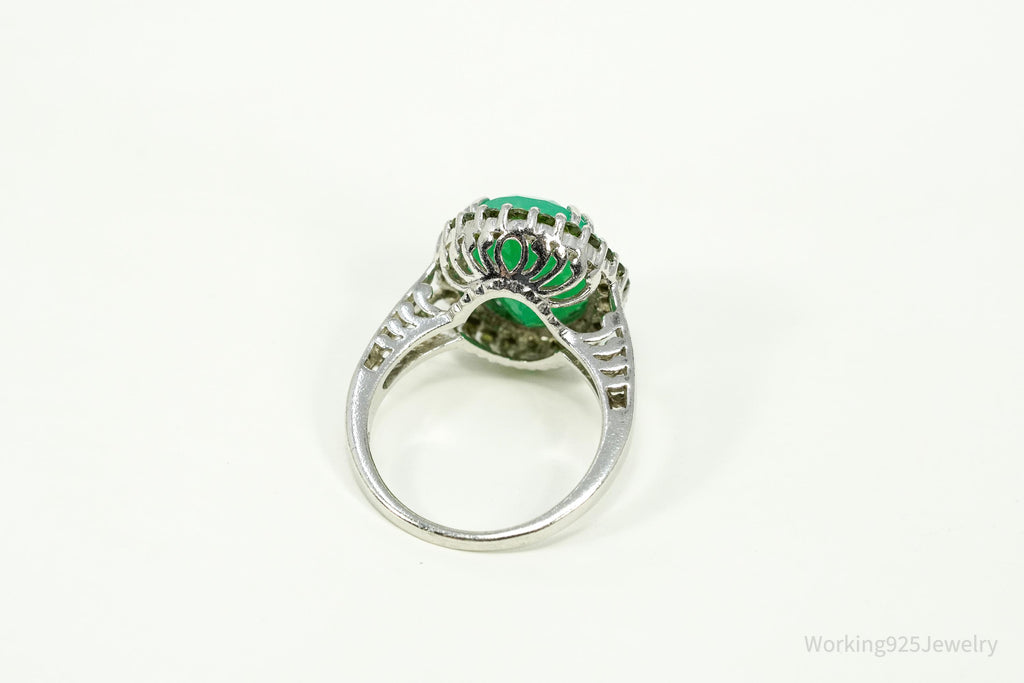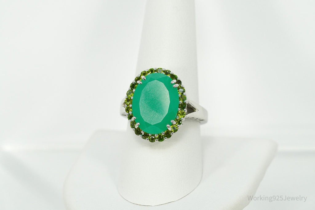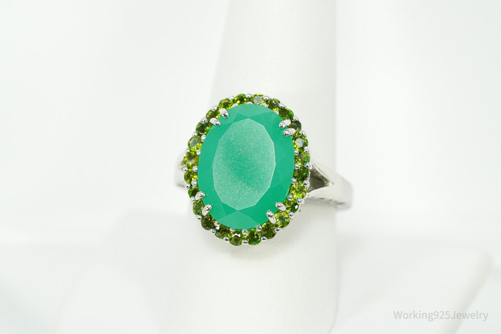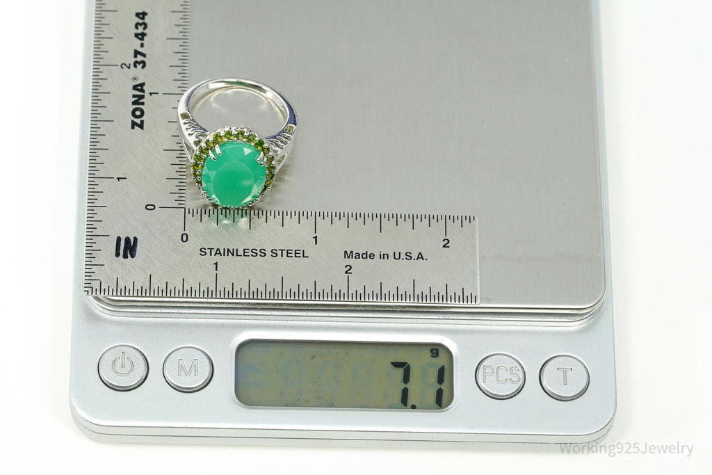 Vintage Green Chrysoprase & Peridot Sterling Silver Ring - Size 9.25