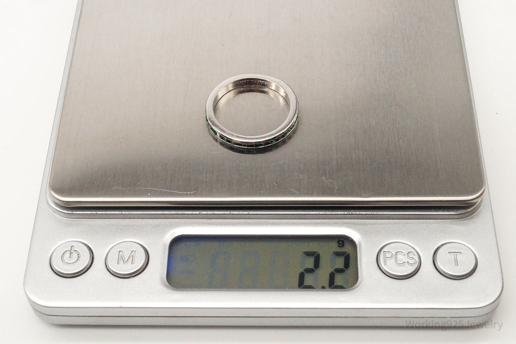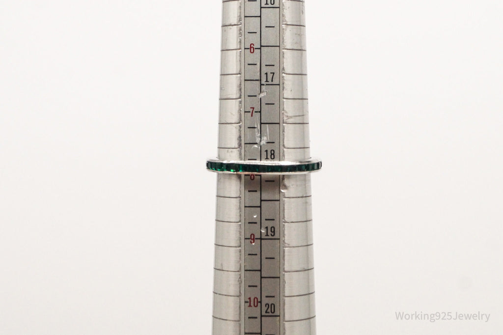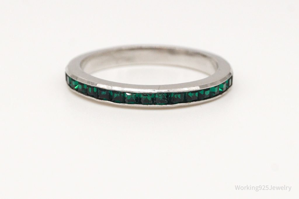 Vintage Green Crystal Sterling Silver Band Ring - Size 8