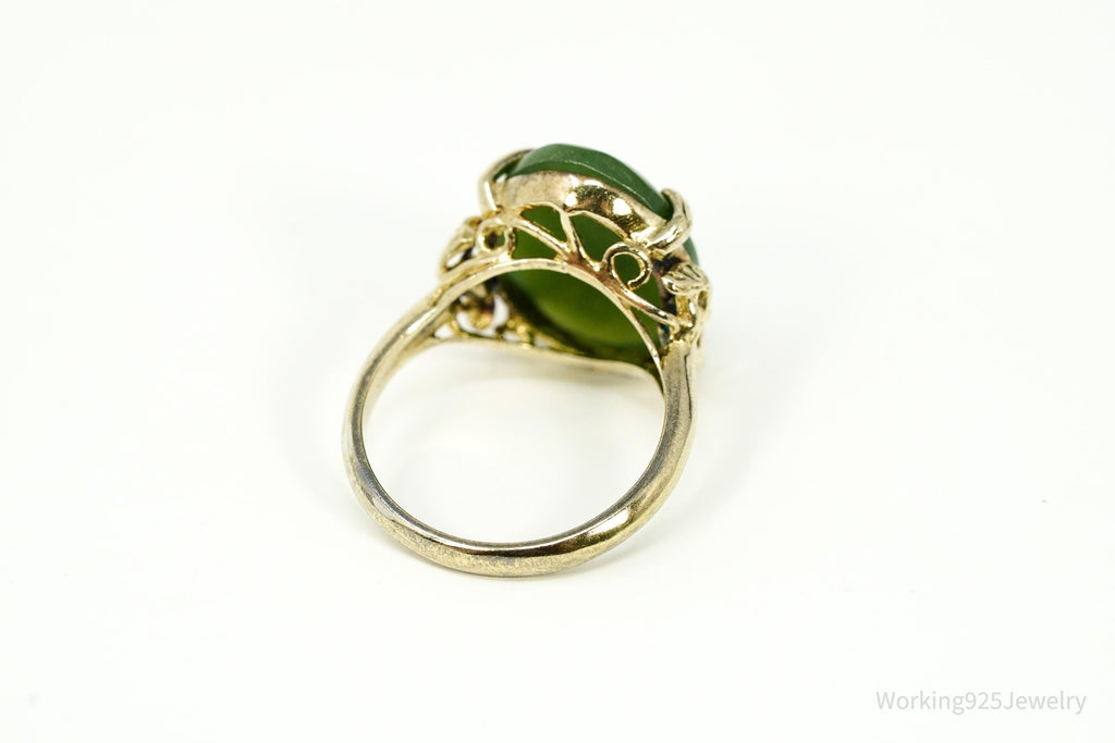 Vintage Green Jade Gold Over Sterling Silver Ring Size 6.75
