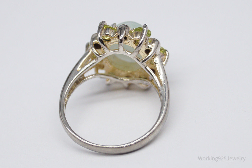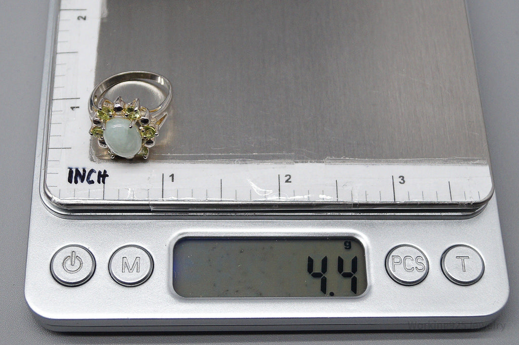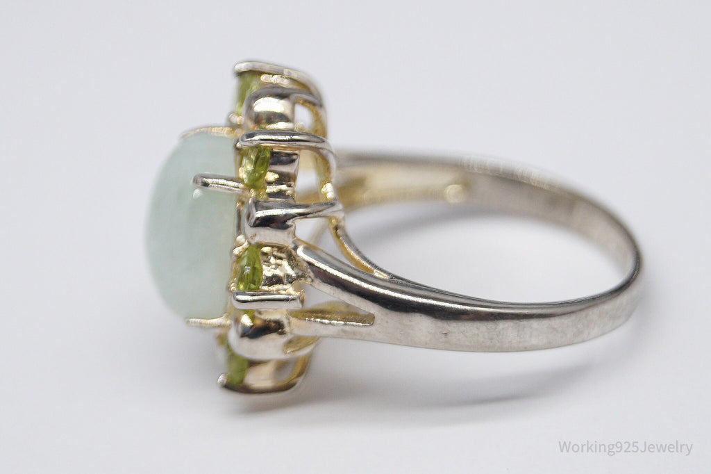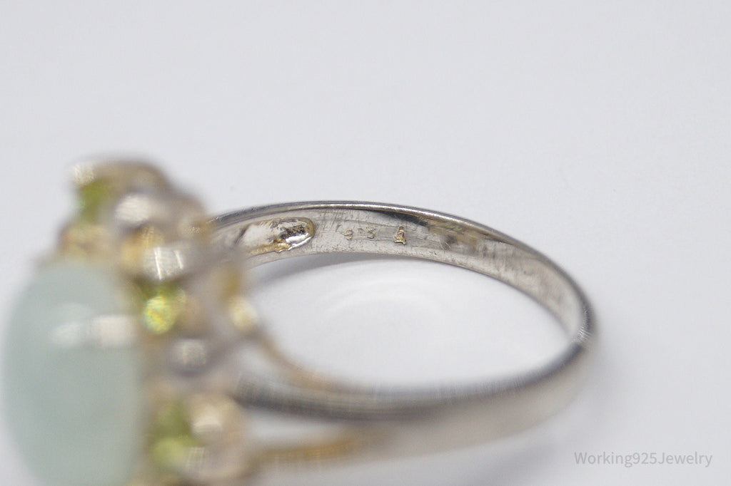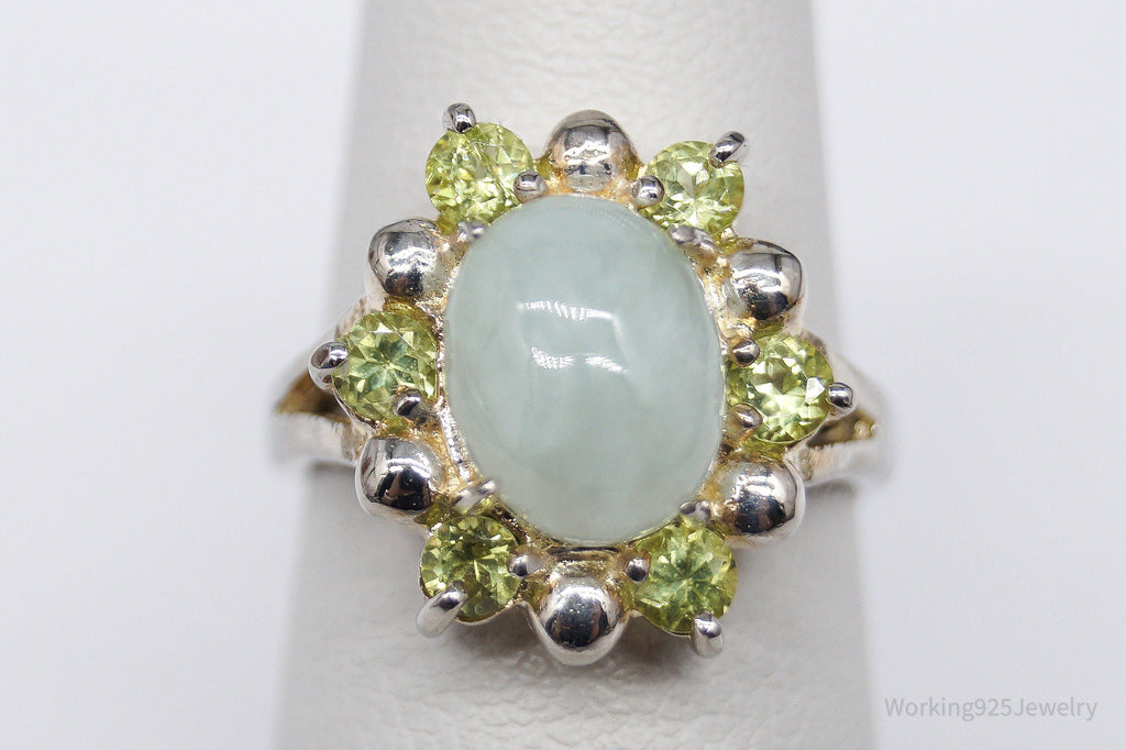 Vintage Green Jade & Peridot Sterling Silver Ring - Size 6